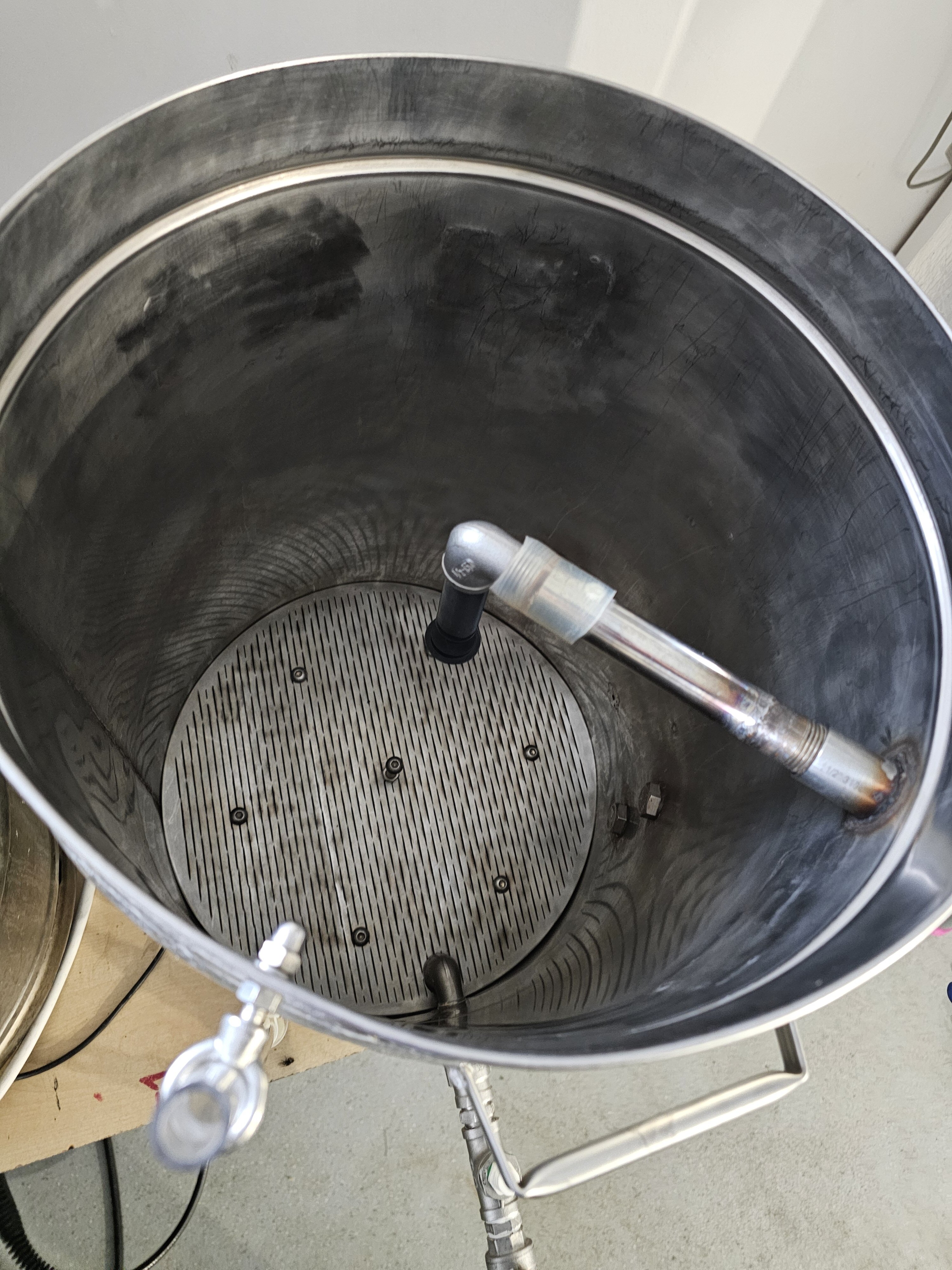 - MLT - zacierna z fałszywym dnem szczeliny 1mm w zestawie z demontowaną deszczownicą oraz czujnik DS18B20 na wylocie do HLT, grzałki 2x2000W
