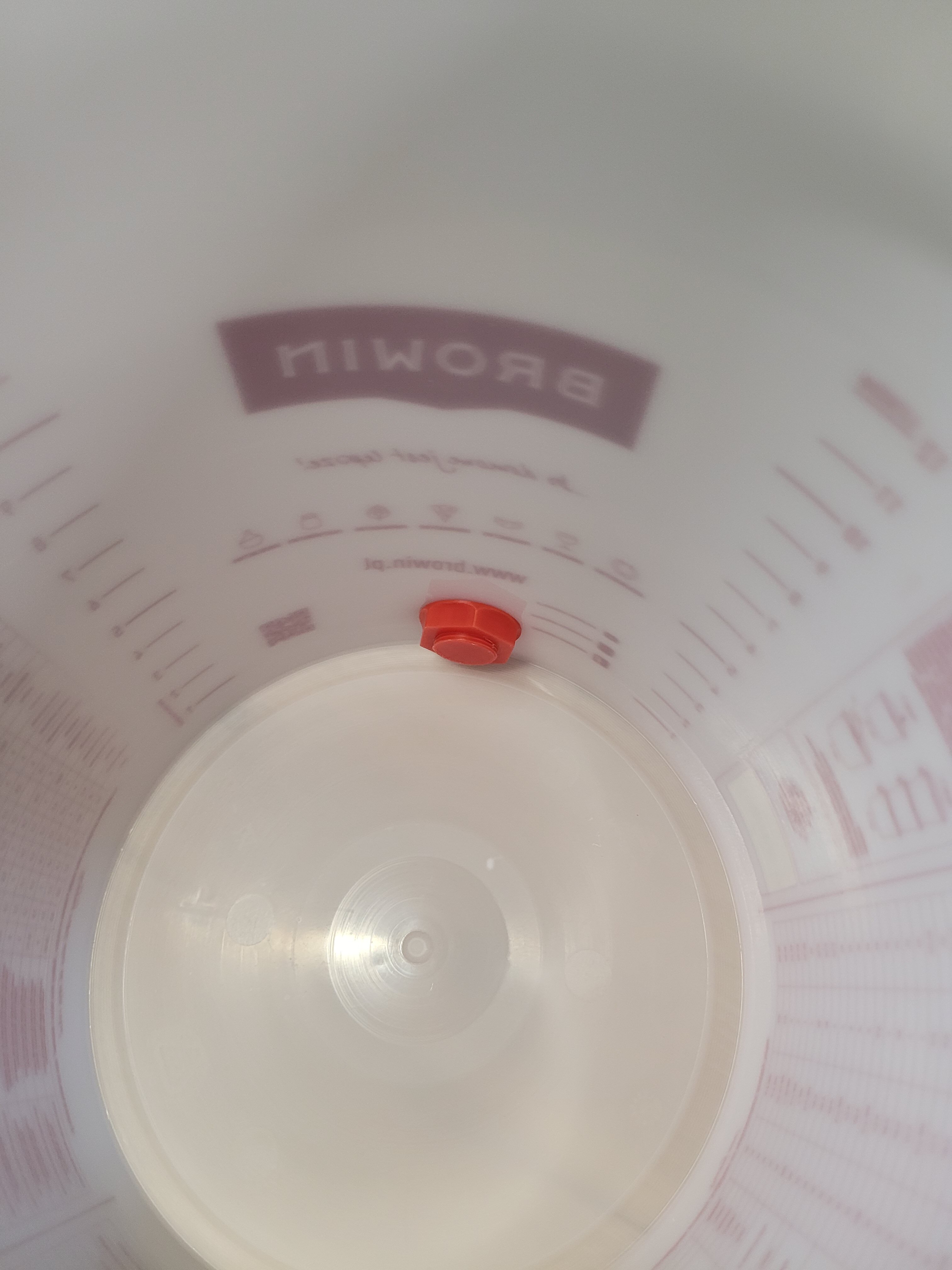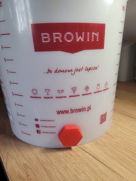 Dziś kegowałem swoją jubileuszową warkę i przy konsumpcji próbki wpadłem na proste, tanie i na moje oko skuteczne rozwiązanie, które ogranicza dostęp tlenu do absolutnego minimum w przypadku fermentacji w wiadrze. Pewnie każdy z Was zaczynał od butelek, więc na pewno macie gdzieś rurkę do rozlewu z zaworkiem. Na końcu rurki, którą nakładamy na kran, znajduje się taka plastikowa końcówka, którą można wyciągnąć: Przeglądając graty zwróciłem uwagę, że klasyczny wężyk 3/8 wchodzi z minimalnym luzem w tą białą końcówkę. Tutaj z pomocą przychodzi niezawodna taśma szkota (izolacyjna), dzięki czemu wężyk szczelnie wchodzi do białego elementu. Podpinamy to w ten sposób do kranu fermentora, a po drugiej stronie podpinamy do Corneliusa złączką do linii piwnej, oczywiście poprzedzając to wypuszczeniem tlenu przez kilkukrotne zagazowanie i odgazowanie kega. W skrócie potrzebne są: -wąż 3/8 -złączka do Corneliusa -rurka z zaworkiem do butelkowania -fermentacja w wiadrze z kranem Dzięki temu jedyny tlen w procesie, to ten ewentualnie znajdujący się w wężyku. Przelanie 18l w ten sposób zajmuje około 10 min. Zignorujcie zasyfiony od zewnątrz kranik, miałem lekki wyciek z innego fermentora1 punkt -