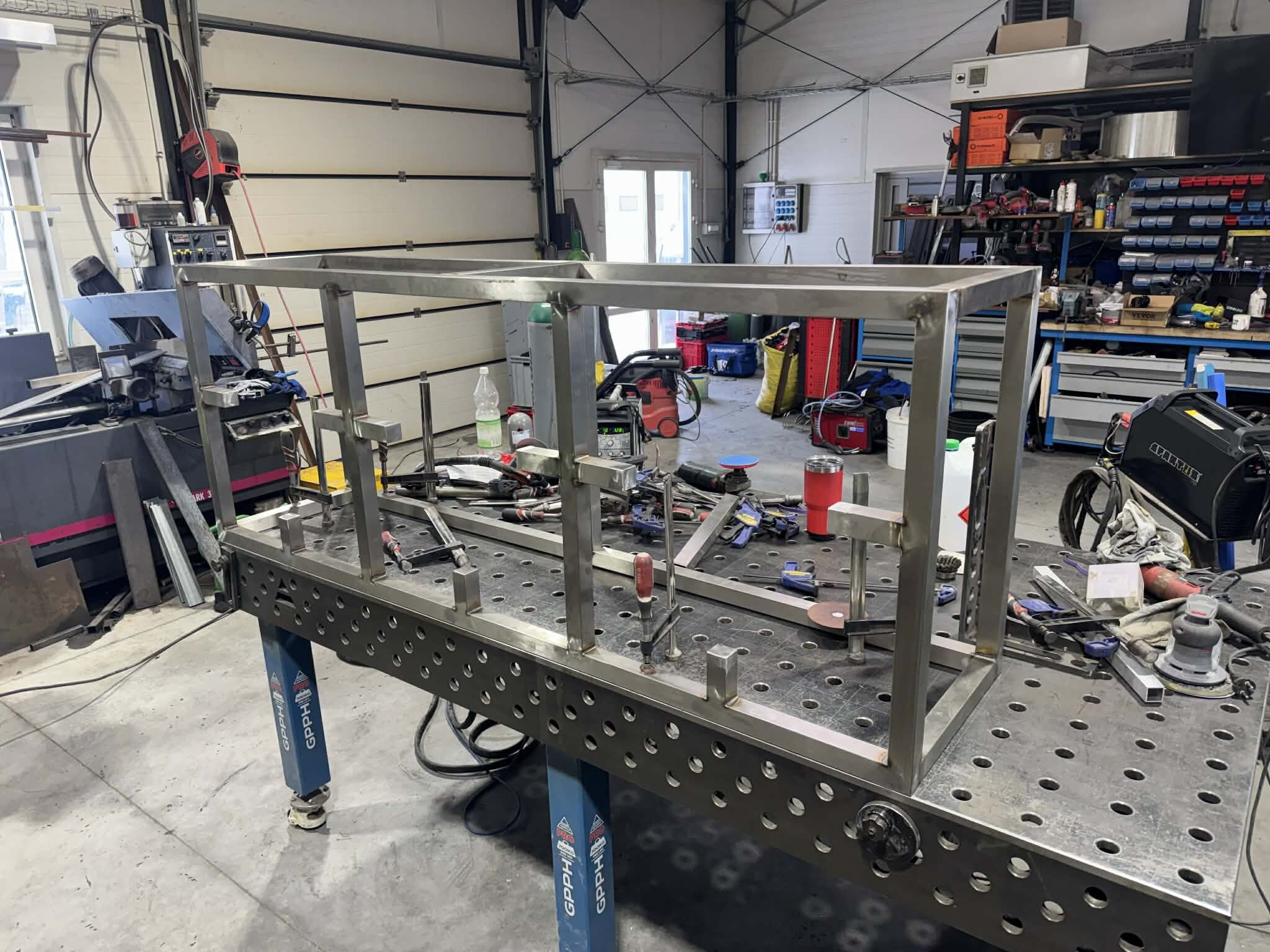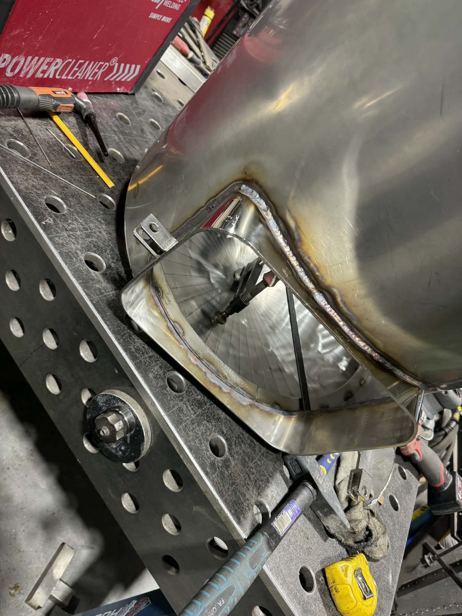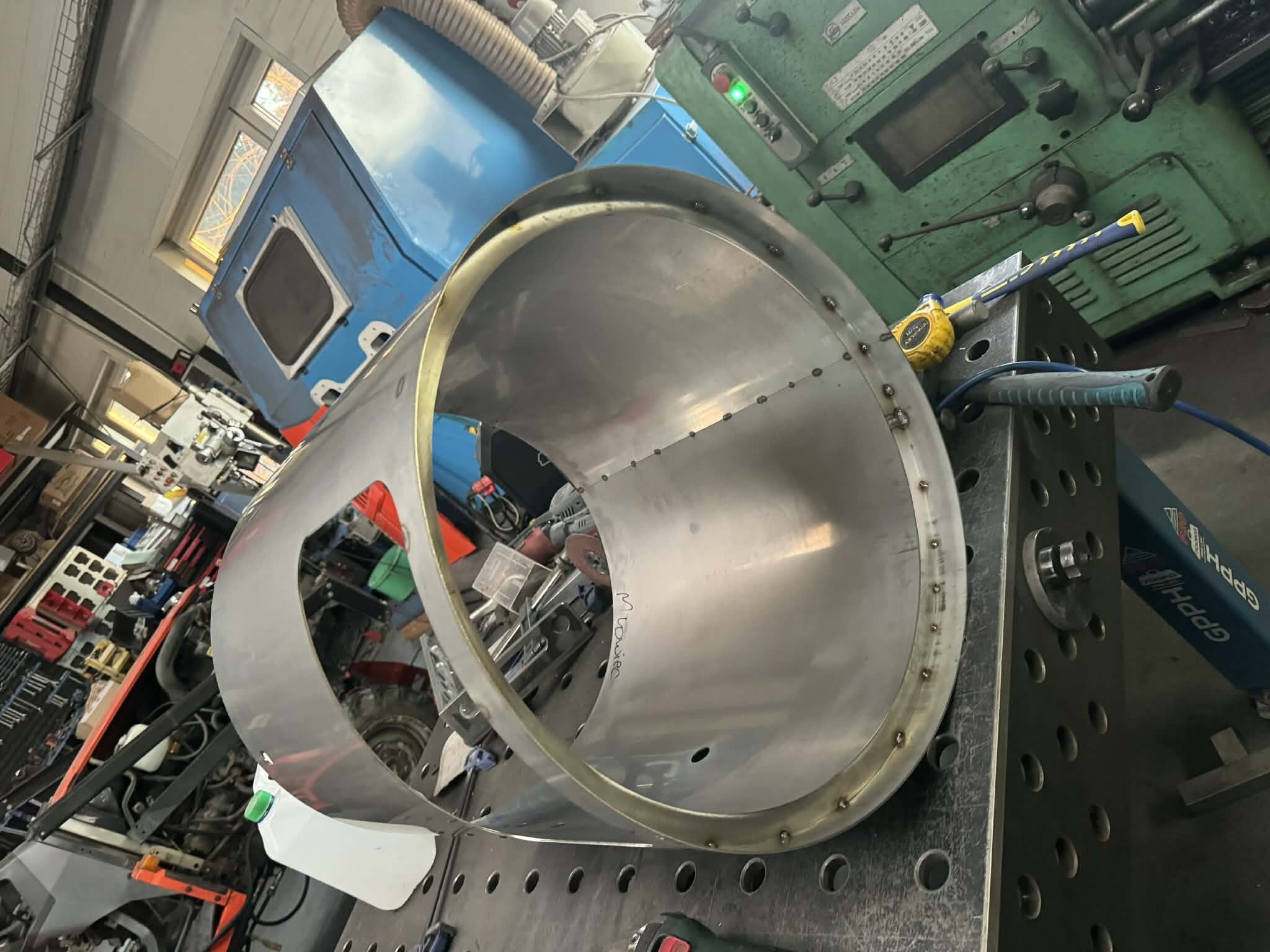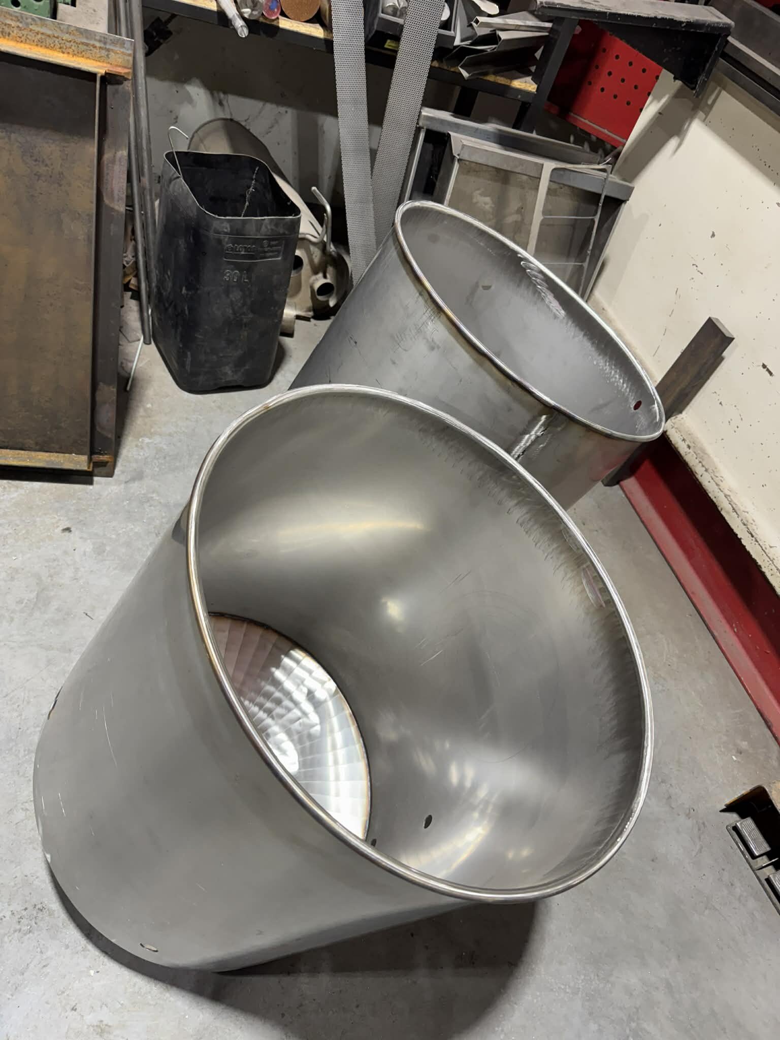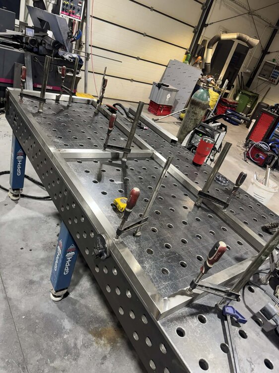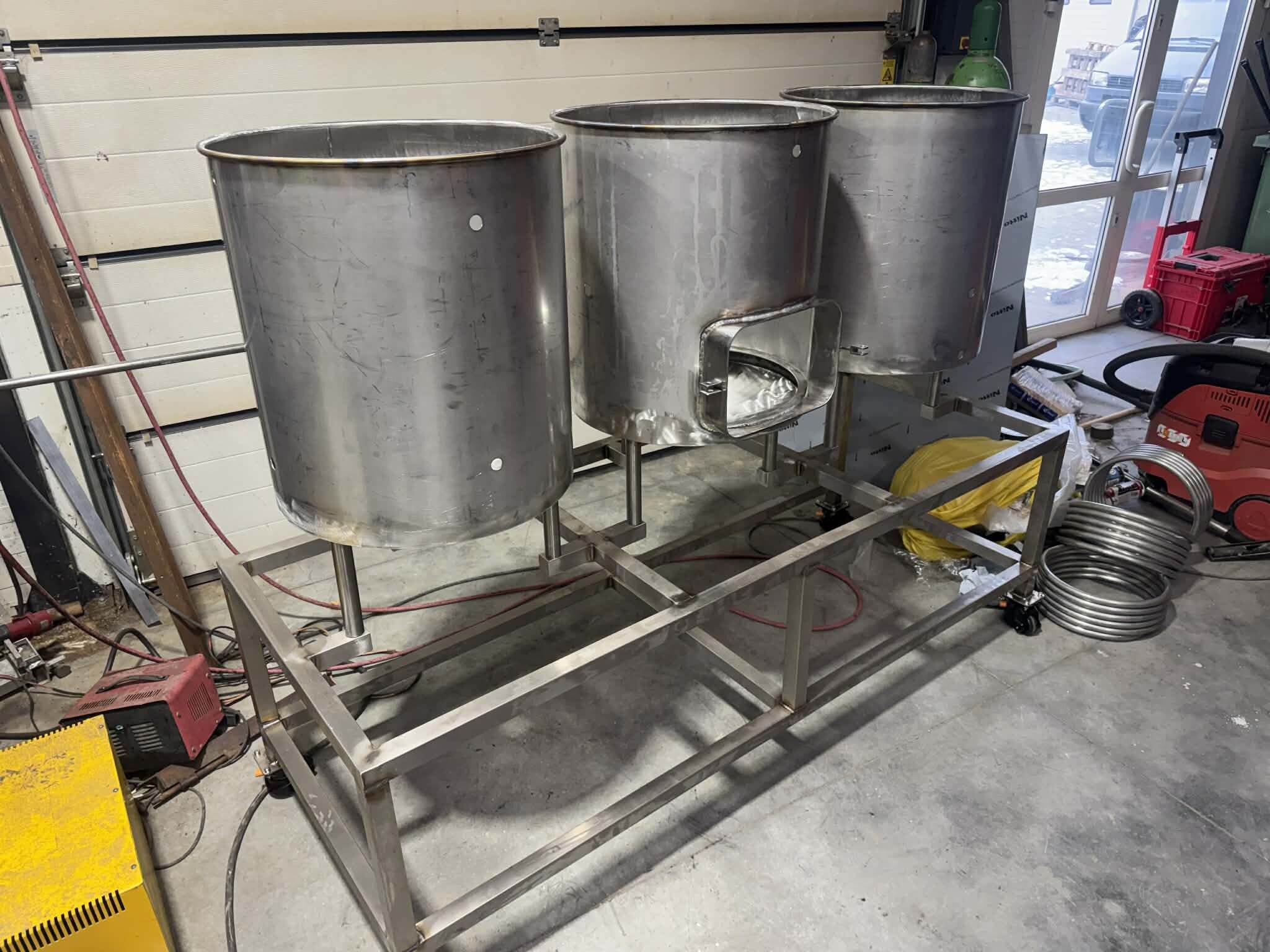 Witajcie, mając kociołek automatyczny i ciągłe problemy z przypalaniem (lubię gęste piwka), mała ilość brzeczki, małe wydajności wiec cały czas chodził za mną HERMS... I tak maja chwile "wolnego" miedzy świętami zacząłem działać z budową. Projekt już miałem narysowany dawno wiec tylko podesłałem blachy na laser i można było działać:) Kiedys bardzo spodobał mi sie pomysł firmy z USA Spike co miała wszystko na jednym wózku i tak tez wykonałem:) Z technicznych danych; 3 zbiorniki 145l brutto blacha nierdzewna 2mm, konstrukcja profile 40x40x1.5 grzałki 4x6kw sterowanie craftbeerpi-jak uda mi sie uruchomic:) wężownica 18mb rury 1/2" tak wyglada orginał; wiec zaczynamy:) na poczatek spawanie ramy nośnej Czas zabrac sie za giecie i spawanie stozków dna Zbiorniki zwalcowali mi chłopaki z lasera wiec nie mam zdjeci, tutaj juz zespolone stozki z korpusami wspawany i wytrawiony rant pod fałszywe dno wspawany właz pod zrzut młóta obspawane dno widok od wewnatrz po pierwszym trawieniu wspawane wzmocnienia rantów z preta fi10mm i upierdliwe spawanie nóżek ale z pomocą przyszedł mały przyrząd i cały komplet juz stoi Jak beda dalsze prace to bede aktualizował wątek, ale to akurat musze działac w wolnych chwilach12 punktów