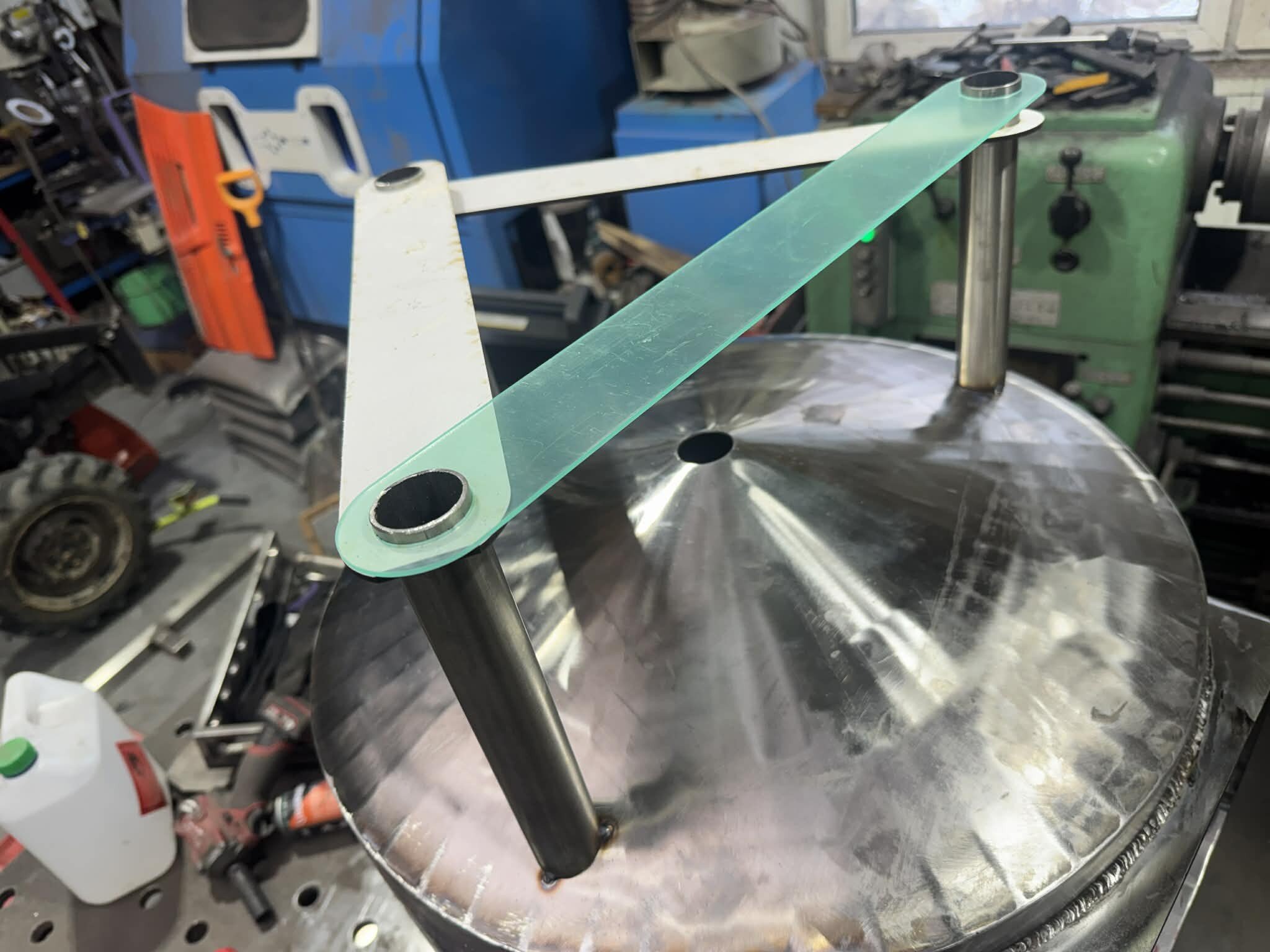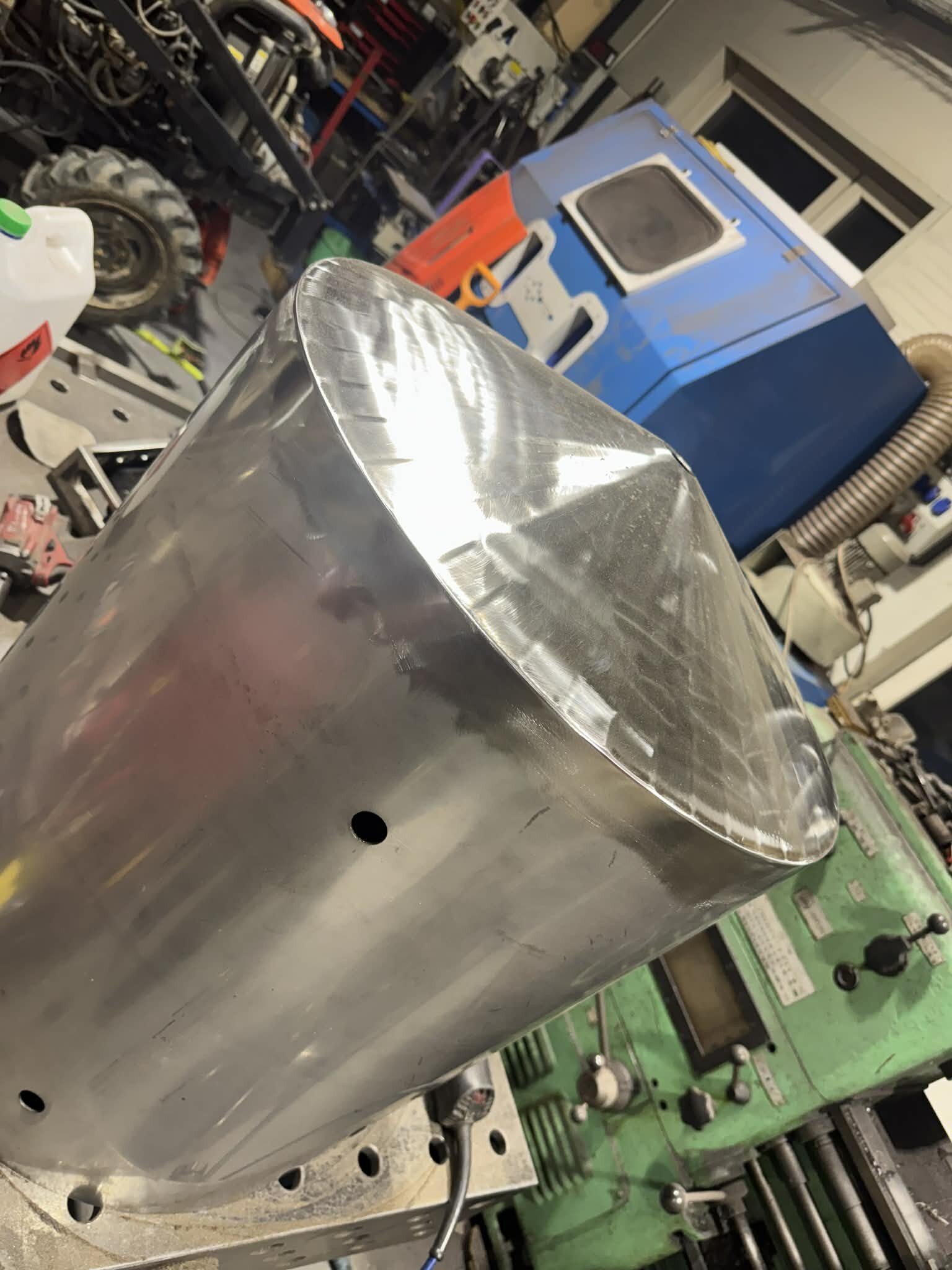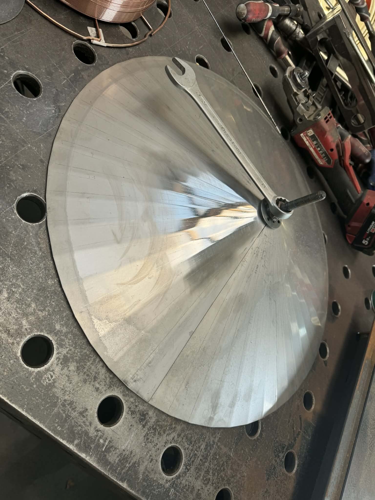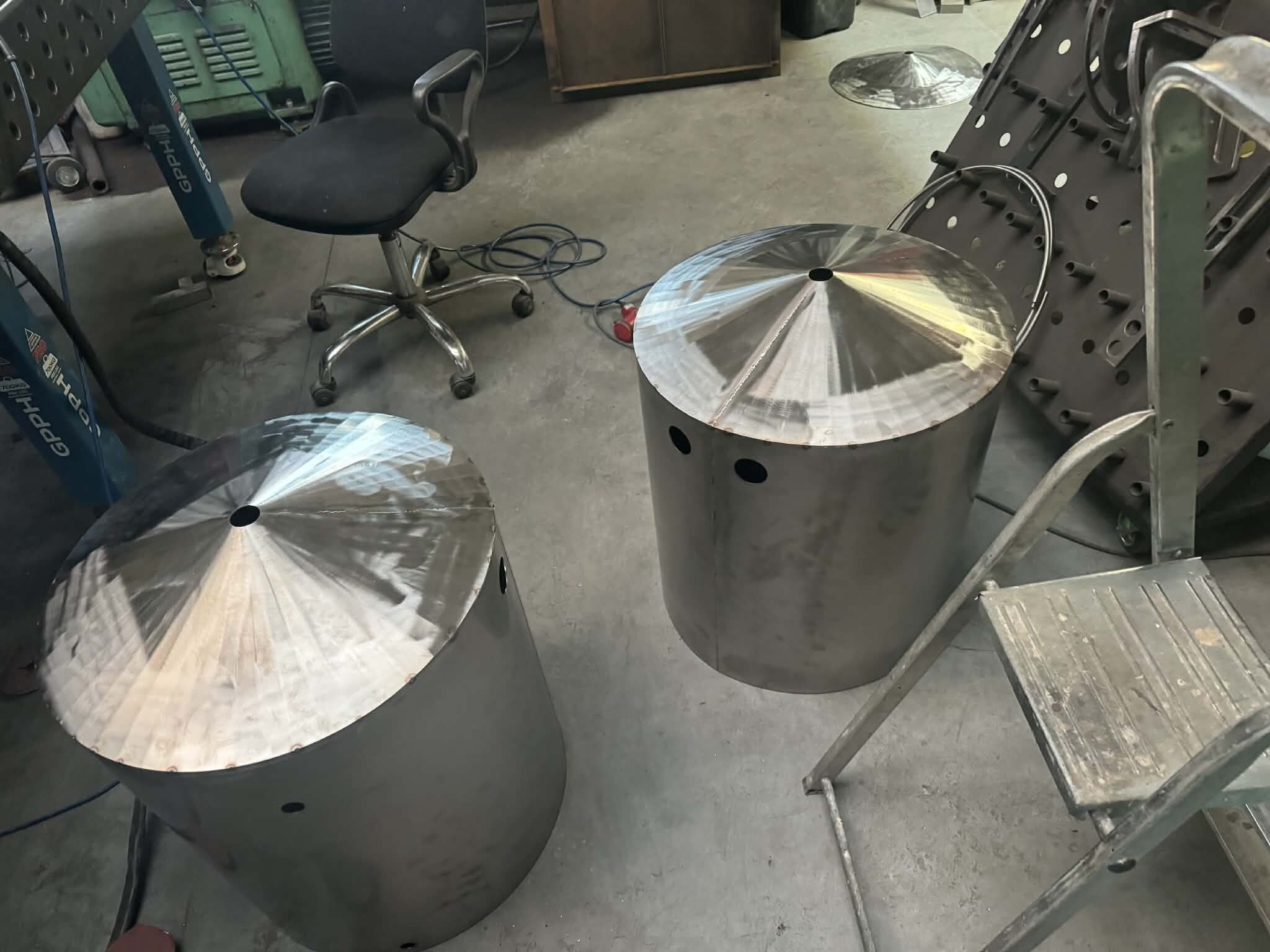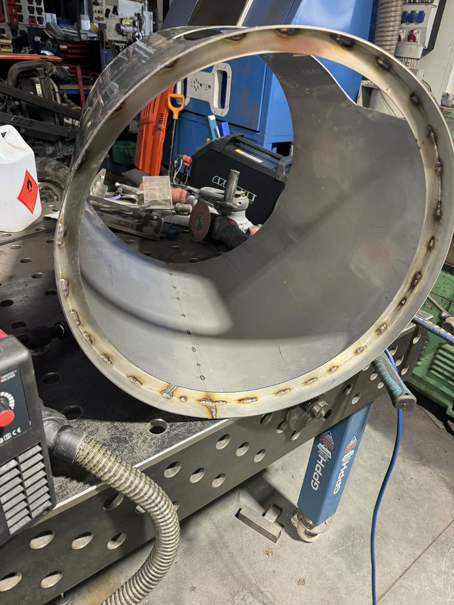 Witajcie, mając kociołek automatyczny i ciągłe problemy z przypalaniem (lubię gęste piwka), mała ilość brzeczki, małe wydajności wiec cały czas chodził za mną HERMS... I tak maja chwile "wolnego" miedzy świętami zacząłem działać z budową. Projekt już miałem narysowany dawno wiec tylko podesłałem blachy na laser i można było działać:) Kiedys bardzo spodobał mi sie pomysł firmy z USA Spike co miała wszystko na jednym wózku i tak tez wykonałem:) Z technicznych danych; 3 zbiorniki 145l brutto blacha nierdzewna 2mm, konstrukcja profile 40x40x1.5 grzałki 4x6kw sterowanie craftbeerpi-jak uda mi sie uruchomic:) wężownica 18mb rury 1/2" tak wyglada orginał; wiec zaczynamy:) na poczatek spawanie ramy nośnej Czas zabrac sie za giecie i spawanie stozków dna Zbiorniki zwalcowali mi chłopaki z lasera wiec nie mam zdjeci, tutaj juz zespolone stozki z korpusami wspawany i wytrawiony rant pod fałszywe dno wspawany właz pod zrzut młóta obspawane dno widok od wewnatrz po pierwszym trawieniu wspawane wzmocnienia rantów z preta fi10mm i upierdliwe spawanie nóżek ale z pomocą przyszedł mały przyrząd i cały komplet juz stoi Jak beda dalsze prace to bede aktualizował wątek, ale to akurat musze działac w wolnych chwilach12 punktów