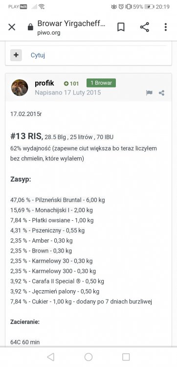 Nawet nie wiem od czego zacząć żeby wam wszystko opowiedzieć. W skrócie można powiedzieć, że wróciłem. Na szczęście nigdy tak naprawdę nie odszedłem daleko. Miałem naprawdę dużo pracy o której też chciałbym wam opowiedzieć ale od początku. Jest październik 2017 roku, kupuje dom z 1950 roku... Nawet nie sądziłem że tak dużo w nim będę poprawiał co niestety przełożyło się na chroniczny brak czasu. Remont rozpocząłem w grudniu i tak dzień po dniu czas leciał, to odwodnienie, to kopanie w sutenerach, wymiana okien, montaż rekuperacji ocieplenie wełna oraz sucha zabudowa, później płytki, malowanie, ocieplenie... To tak w skrócie ??? nastepnie przeprowadzka oraz jeszcze więcej pracy by to wszystko poukładać do kupy. Dzisiaj dzięki mojej naprawdę ciężkiej pracy oraz pomocy kilku wspaniałych ludzi mogę powiedzieć, że wykonało się i z ręką na sercu obiecuje to sobie ze w koncu mam czas na wrażenie piwa ?? A jeśli o piwie mowa to aktualnie pije prawie piecioletniego risa który naprawdę smakuje zacnie No więc panowie jeszcze w tym roku czas poskładać sprzęt od nowa i można ruszać na podbój nowych przepisow...