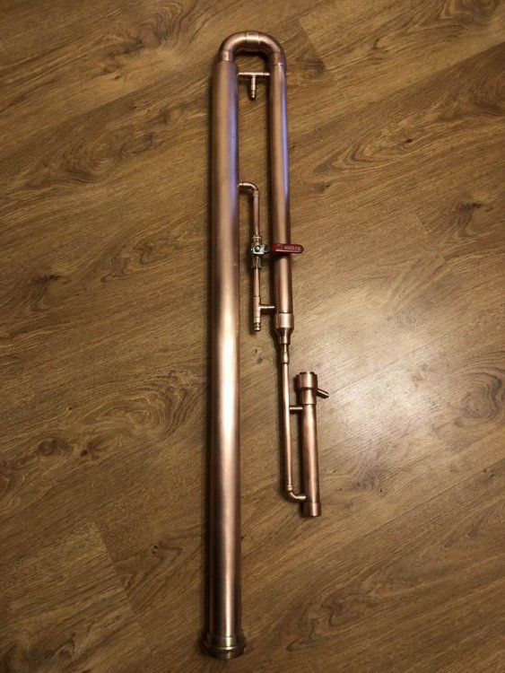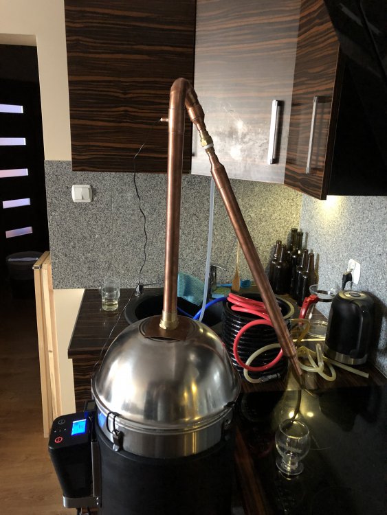 23. Ja do GF zrobiłem sobie kiedyś potstila ze stalowej miski i kawałka miedzi. Puściłem na tym kilka nastawów i poszło w kąt. Póżniej kolega @lewatywa8 przerobił mi wieko od obciętego kega na pokrywkę i do tego jeden kolega z innego forum dorobił mi taki miedziany saksofon, ale jeszcze na nim nic nie grałem. Niestety w końcu trzeba było się zainteresować swoją wagą i zrzucić kilka kg, a alkohol w tym nie pomaga . Sprzęt jednak stoi i mam nadzieję, że niedługo będzie użytkowany podobnie jak i GF.