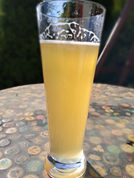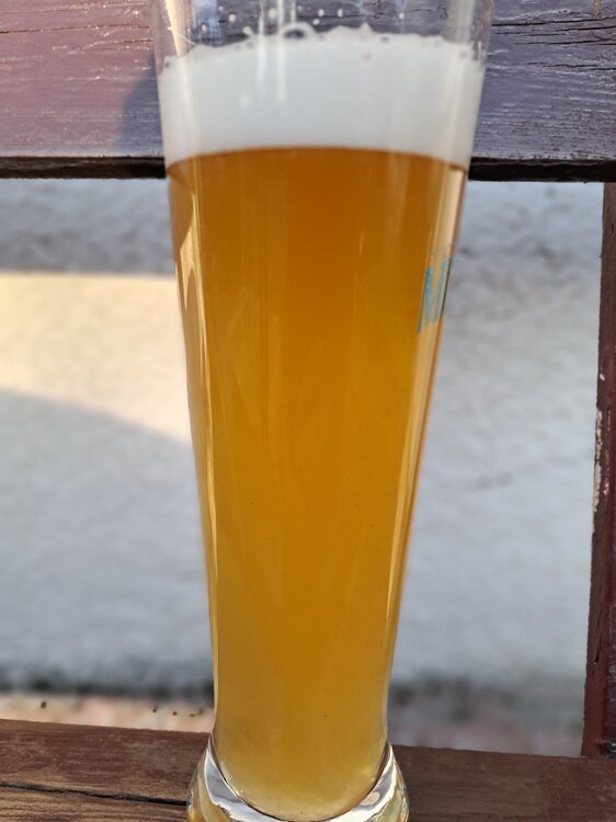 Warka 176 26,03,2025r. Weizen 23l 11blg 14 IBU - pilzneński 2,5kg - pszeniczny 2,5kg + Marynka 15g * WB-06 z warki 173. Zebrałem 2 słoiczki po przecierze pomidorowym i dodałem całość do dzisiejszej brzeczki. Najprawdopodobniej przedostatnia warka w sezonie. Powstanie jeszcze jeden duży berliner z owocami. Docelowo miałem robić 50l tego weizena, ale trochę jednak mało gęstwy. A piwa już i tak sporo. W każdym razie będę miał w zanadrzu jakieś 5kg słodu jeszcze na jakąś wareczkę jeśli będzie wena. Zacieranie - 20l wody 68°C wsypałem słód. 64°C/ 1h 72°C/ 20' 78°C/ 5' i filtracja Filtracja - Sprawnie. Wiadro plus sprężyna. Jest 27l 9,5blg Gotowanie - 60 minut intensywnie. + Marynka 15g w 10' Schłodziłem całość do 18°C. Whirpool standardowo + zlewanie końcówki przez sitko. Stary spławik 10,3blg Nowy spławik 11,5blg Refraktometr 11blg Jest nieco ponad 23l, więc uśredniając uznaję, że 11blg ma brzeczka nastawna. Fermentacja - Napowietrzyłem zlewając i mieszając łygą. Zadałem drożdże i wstawiłem wiadro w ok 18-22°C 12,04 ROZLEW 138g cukru w 1,1l wody. Zeszło do 1,5blg. Cel to 2,5 vol CO2. W smaku jest ok, jest mętne, czuć banan i chyba sporo goździka. Gotowe butelki stoją w ok 16-18°C. 18,04 Wyniosłem do piwniczki. Pet jest już twardy. 19,04 Wygląd - jasne złoto, słomka, mętne lekko ładnie jednolicie. Na dnie butelki jeszcze był osad, którego nie wlałem, aby nie było zbyt mętne. Piana ładnie się buduje. Cienka warstwa na całej tafli zostaje do końca. Aromat - Bardzo przyjemny, dość wyraźny i jednocześnie łagodny. Jest lekki banan, troszkę drożdże, jasny biszkopt. Goździk to może gdzieś w tle, jako taka ogólna korzenność. Fajny ten banan, bo nie za słodki. Nie no im dalej tym goździk jednak też jest. Także super. Smak - słodycz lekka na początku, dalej bardzo lekka goryczka i na koniec spora dawka kwaśności, powyżej średniej. W smaku jasny słód, banan lekko i w smaku dużo więcej goździka. Objawia się on w smaku, goryczce i tej kwaśności. Balans smaku bardziej goździkowy. Ogólnie - Po pierwszej próbie nie ma co wyciągać za dużo wniosków. Ale jestem pozytywnie zaskoczony, bo piwo przy rozlewie budziło moje wątpliwości o drożdżowość i dużo smaku goździka. Tymczasem aromat jest fajnie łągodny. Goździk faktycznie jest, ale nie dominuje i nie przeszkadza. Na tę chwilę to jest bardzo fajnie. Na teraz goździk objawiający się goryczką i kwaśnością jest na dobrym poziomie. Jeśli nie wyjdzie to jeszcze bardziej na wierzch to będzie dobrze. Jeśli by się to jakoś uwypukliło to może spaść pijalność. 01.05.2025r. Wygląd - zdjęcia z dzisiaj. Ogólnie - wrażenia podobne jak wyżej. Całość troszkę łagodniejsza jeszcze. Z tym, że w posmaku jest taka nuta goździka, która odbiera trochę pijalności. Ale generalnie jest bardzo fajnie. 06,06 Test porównawczy MOJE vs PERLENBACHER HEFEWEISSBIER. Wygląd - oba celowo zmąciłem. Moje jasne słomkowe. Perlenbacher ciemniejsze, złote, takie nawet nieco ciemniejsze złoto. Różnica spora w kolorach. Piana w obu całkiem dobra, w Perlenbacherze jednak nieco ładniejsza. Aromat - Moje banan, sporo goździka. Ładny aromat, ale spora dawka goździka dodaje trochę ostrości temu piwu. Perlenbacher to banan, guma balonowa, słodszy aromat, łagodniejszy. Oba aromaty fajne. Moje bardziej korzenne, Perlenbacher bardziej słodki, bananowy. Smak - Moje pełnia, słodycz, lekka goryczka goździkowa, kwaśność średnia. W smaku słód jasny, banan, korzenie, goździk. Jest bardzo fajnie. Tego goździka sporo, ale daje to kontrę dla słodyczy i banana. A to dobrze, bo weizeny potrafią być trochę mdłe jeśli jest banana za dużo i gumy balonowej. Perlenbacher to pełnia, słodycz, lżejsza goździkowa goryczka, kwaśność podobna. W smaku słód jasny z nutką biszkoptu, banan i trochę goździka. Nie wiem skąd skojarzenie, ale poczułem taki śliwkowy kompot ze słoika. Ogólnie - Oba weizeny nie są w 100% w moim guście. Moje jest nieco zbyt goździkowe, przyprawowe. Perlenbacher trochę za słodki i bananowy. Oba są też trochę zbyt pełne ogólnie. Trochę im barkuje takiej zwiewności i pijalności z wyżej wymienionych powodów. Ostatecznie wynik blisko remisu, ale ze wskazaniem na Perlenbacher. Lepsza piana, ostatecznie chyba lepszy aromat. W smaku chyba remis. Moje 7/10 Perlenbacher 7,5/10. Chociaż z drugiej strony gdybym miał wypić 4 sztuki któregoś z nich to wtedy chyba wybieram moje. 29,06,2025r. Wygląd - jasne słomkowo złote, jednolicie mętne, bo zmąciłem. W szkle praktycznie klarowne. Aromat- jasny słód, przyprawy, goździk, banan. Jest trochę nacisk na goździk, ale aromat jest tym razem taki fajny spokojny. Smak - lekka słodycz, dalej lekka słodycz, lekka goryczkowa kontra, dalej średnia kwaśność fajnie zaznaczona. W smaku słodowe, pszeniczne lekki banan i nieco więcej goździka. Zaznaczony, ale stonowany ten goździk. Ogólnie - dziś piwo smakuje mi najlepiej. Goździk fajnie zaznaczony dzięki czemu piwo nie jest zbyt bananowe. Jednocześnie całość ładnie się komponuje, jest pijalne, nic nie przeszkadza. Dziś mam odczucie jako kapitalny weizen. 9/10 28.08.2025r. Wygląd - jasne słomkowo złote, jednolicie mętne. Piana na 2 palce. Bardzo fajnie. Aromat - jasny słód, przyprawy, goździk, banan. Jest trochę nacisk na goździk, ale aromat jest tym razem taki fajny spokojny. Fajny jest ten goździk. Dzięki temu piwo jest w aromacie bardziej gorzkie i wytrawne a nie słodko bananowe. Smak - lekka słodycz, dalej lekka słodycz, lekka goryczkowa kontra, dalej średnia kwaśność fajnie zaznaczona. W smaku słodowe, pszeniczne lekki banan i nieco więcej goździka. Zaznaczony, ale stonowany ten goździk. Dziś mam odczucie, że ten goździk nieco bardziej się wyróżnia i bardziej dokłada do goryczki. Ogólnie - Bardzo fajny weizen. Dziś nieco bardziej goździkowy 