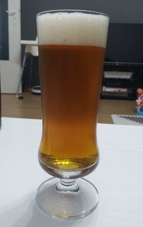 #50 Polskie ALE 11,5°blg Zasyp: 5kg pilzneński 0,5kg pszeniczny 0,5kg monachijski Zacieranie: Jednotemperaturowo 60' - 66,5°C Chmielenie 60' Marynka - 20g - 60' Marynka - 30g - 30' Lubelski - 15g - 15' Drożdże: podzieliłem warkę na 2 części po 13l S-33 i US-05. Początkowo planowałem tylko US-05, ale raz że te które miałem w lodówce swoje już tam przeleżały, a dwa to miałem równie starą (nie przeterminowana) paczkę S-33 więc stwierdziłem, że podzielę warkę na pół i zobaczę które mi bardziej podejdzie. Parametry stylu / Moje (realne, wyliczone) OG: 11 - 13°Blg / 11,5°blg IBUs: 25 - 45 / 48 FG: 2 - 3,5°Blg / 2°blg SRM: 2 - 8 / 4,5 ABV: 4 – 5,5% / who knows 26 litrów - podzielone na 2x13l Wydajność ok 60%. Fermentacja: 27.03.2020 - 01.05.2020 - zabutelkowane na poz. co2 2,7.