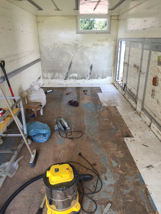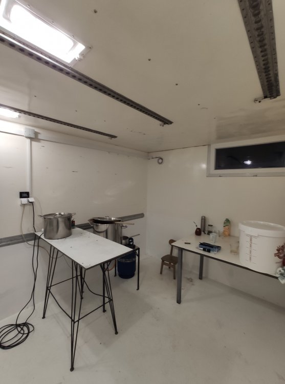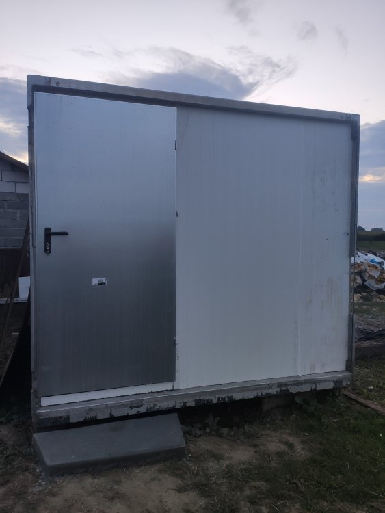 Ok, teraz czas pochwalić się projektem, o którym wspomniałem na samym początku. Kiedy zaczęła się epidemia, postanowiłem przenieść się na jakiś czas do domu rodzinnego, i pracując stamtąd zdalnie zająć się ogarnięciem sensownego miejsca do warzenia piwa, gdyż cały czas drażniły mnie warunki kuchenne. Z racji na fakt sporego podwórka a małej ilości pomieszczeń gospodarczych, padło na pomysł kupna kontenera chłodniczego, jakie służą do transportu żywności ciężarówkami. Trochę szperania w Internecie i parę wycieczek, żeby w końcu zdecydować się na budę o ciekawych wymiarach, bo około 6x2,5 m Sporo było przy nim do zrobienia, ale z dużą pomocą brata dało się wszystko zrobić, co po krótce opiszę: Na początek usuwanie wszystkiego co zbędne. Było to obite sporą ilością złomu, a przy wejściu była ogromna blacha: Następnie przyszedł czas na ratowanie podłogi. Tak wyglądało to na początku: Usunąłem tę włóknistą matę i pozbyłem się zawilgoconych fragmentów sklejki zastępując suchą, no i w miejsce dziury na agregat trafiło okno na wymiar. Później dokończyliśmy podłogę i zamknęliśmy całość nowymi drzwiami: Następnie wziąłem urlop na tydzień, żeby umyć wszystko do czysta. Wtedy zaczęło to wyglądać sensownie. Miałem też zielonego asystenta Na koniec zostało już tylko doprowadzenie prądu i tak wyglądała moja warzelnia podczas inauguracji: Miejsce jest rozwojowe, a następnym krokiem jest doprowadzenie jakimś sposobem wody. Będę wrzucał na forum zdjęcia ciekawszych momentów.