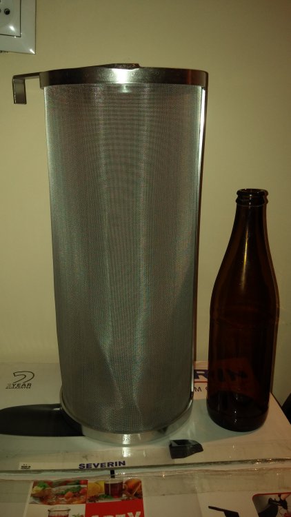 Dnia 30.01.2018r dotarł do mnie hop spider od chińczyka ;] wymiary 35,5x15,3cm, 300 mikronów- stal nierdzewna Paczka płynęła jakieś 1,5 miesiąca i troszke karton był pogięty przez co ucierpiały ścianki boczne, ale raczej wszystko będzie dobrze. Hop spider w garze Tadar 50L Porównanie Hop spidera z butelką 0,5l typu vichy