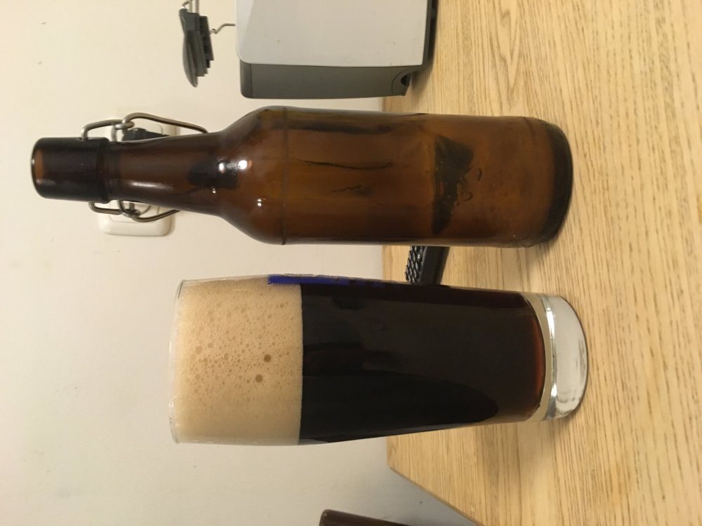 Czech Dark Lager (13 Plato, ca. 23 IBU, Alk: ca. 5,5 % mas/vol.) Zasyp: 1,6 kg Weyermann Pilsner Malz 0,6 kg Weyermann Münchner Malz 0,1 kg Weyermann Carahell 0,1 kg Weyermann Carafa Spezial Chmiel: Magnum 14,1 % AA (2017) Saaz 4,3 % AA (2017) Drozdze: Zymoferm 008 Dunkel Lager Woda: Zacieranie - 8l. (100% kranowa) + 1 ml. Ekstrakt slodu zakwaszajacego (55%) Wysladzanie - 7l. (100% kranowa) + 1 ml. Ekstrakt slodu zakwaszajacego (55%) Zacieranie: 62 stopnie C (Mash in) 30´ 72 stopnie C 30´ 78 stopnie C (Mash out) 10´ - dodatek Carafa Spezial Chmielenie: Magnum 14,1 % AA (2017) - 7g. 60´ Saaz 4,3 % AA (2017) - 25g. 10` przelewanie na chlodzenie Brzeczka nastawna: Uzyskane 11l. brzeczki nastawnej Fermentacja: 10 dni - 10 stopni C 10 dni - 5 stopni C Fermentacja w jednym fermentorze Nagazowanie: 2,5 Vol. Cel: Moje pierwsze piwo ciemne, mialo sluzyc do przelamania sie do piw tego typu. Celem bylo piwo ciemne ktore nie jest zbyt przytlaczajace slodami palonymi oraz zbytnia slodkoscia, z lekko wyczuwalnym chmieleniem. Opis piwa: Cel zostal osiagniety. Wyszlo piwo o lekkim stopniu palonosci oraz lekkiej slodyczy. Odpowiedni kolor oraz piana. Lekko wyczuwalne nachmielenie. Po raz kolejny przekonalem sie iz para chmieli Magnum oraz Saaz pieknie ze soba wspolgra. Piwo przeroslo moje oczekiwania i zagoscilo na stale w moim repertuarze.