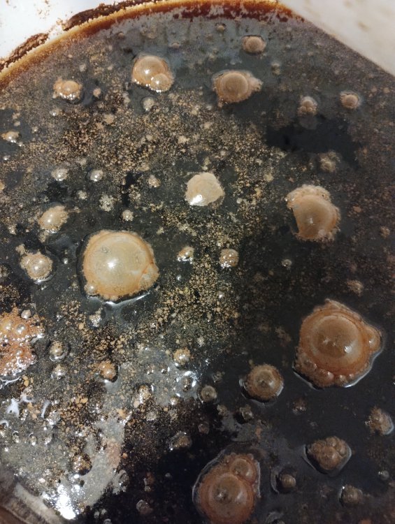 Czy to jest biofilm czy to może być tłuszcz? Po fermentacji porteru bałtyckiego pojawiły mi sie takie piękne bąble na piwie BLG 5,3 ABV 7%, brzeczka była zaszczepiona gęstwą 1,5 tygodniową (bochemska rapsoda). Pytanie o tłuszcz stąd, że ok 1,5 kg słodu wędzonego było przechowywane w opakowaniu po kawie przez jakiś rok i jak sypałem do mielenia to pewnie razem z resztkami kawy. Blog Oskalibera z wpisami na temat zakażeń sobie przyswoiłem i dalej nie wiem co to. Piwo smakuje normalnie, żadnych dziwnych zapachów też nie rozpoznaję.