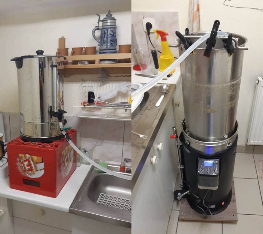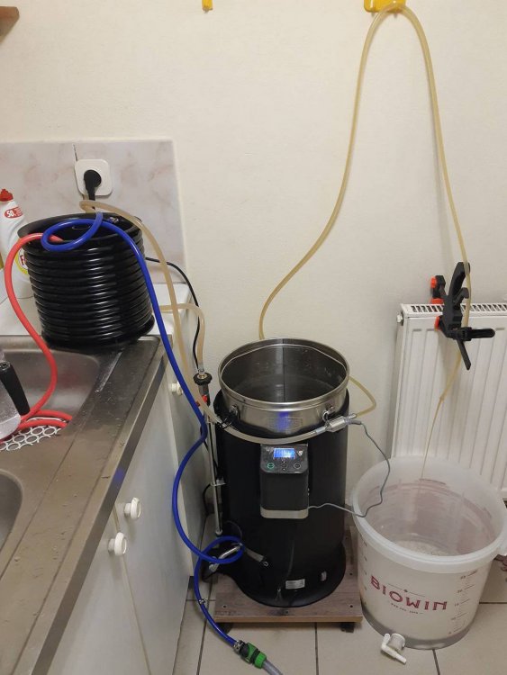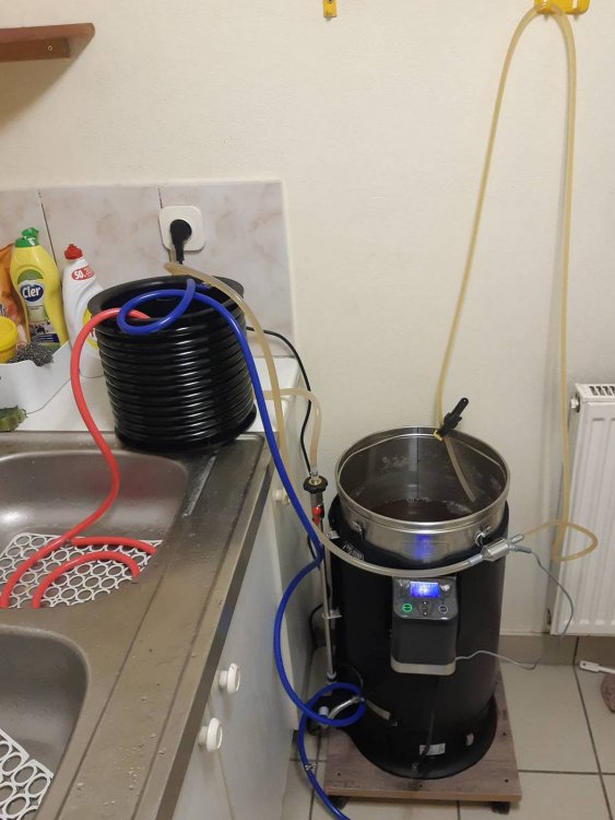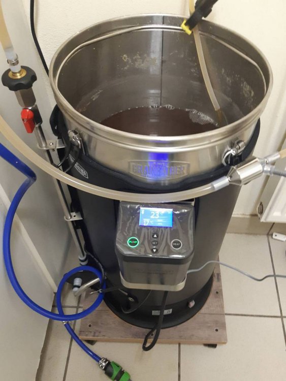 Szczerze polecam Ci GFa. Co prawda nie miałem styczności z innymi systemami, ale skoro inne osoby miały i jasno wyraziły się że jakość jest jego głównym wyróżnikiem, to mogę się pod tym podpisać. Sprzęt jest naprawdę solidnie zrobiony. Tak informacyjnie, to jestem właśnie po pierwszym warzeniu na tym sprzęcie w dniu wczorajszym i poszło praktycznie idealnie. Całość zajęła mi ok. 5h, bo i scheamat zacierania oraz gotowanie dłuższe niż standardowe, więc zakładam, że można zejść do ok. 4-ech godzin dla warki z 1h zacierania na lenia + 1h gotowania, ale do 3-ech to raczej się nie da... U mnie czasowo było dokładnie tak (Belgian Ale - zasyp 6.1kg ; warka 23.5L): 14.30 - 15:00 Start grzania 20L wody na zacieranie (nie liczę tego czasu, bo ustawiłem w apce zdalnie ten proces i przyszedłem na gotowe) 15:00 - 15:10 Wsypywanie słodu partiami + dokładne mieszanie zacieru (zegar stop) 15:10 - 16:45 Zacieranie ok. 95 minut (3 etapy: 50 min w 63C ; 15 min w 72C ; 3 min w 78C + ok. 25 min. czas pomiędzy przerwami w którym GF podgrzewał brzeczkę do następnej temp.) 16:45 - 17:10 Wysładzanie i filtracja 17:20 - 18:50 Gotowanie i chmielebnie (90 minut) 18:50 - 19:00 Whirpool + czekanie ok.10 minut na utworzenie się stożka chmielin 19:00 - 19:20 Chłodzenie brzeczki do ok. 20C 19:20 - 19:45 Zlewanie do fermentatora (brzeczka osiągnęła temp. 18C i od razu napowietrzanie) 19:45 Zadanie drożdży + potem ok. 1h na czyszczenie sprzętu i sprzątanie pomieszczenia To co mnie dodatkowo pozytywnie zaskoczyło, to bardzo krótki czas jaki był potrzebny na doprowadzenie brzeczki do wrzenia od momentu wysładzania (na gazie to była dobra godzina) Załączam parę fotek zrobionych na pamiątkę z inauguracji: EDIT: Wydajność zacierania wyszła ok. 79%, więc IMHO bardzo dobrze.