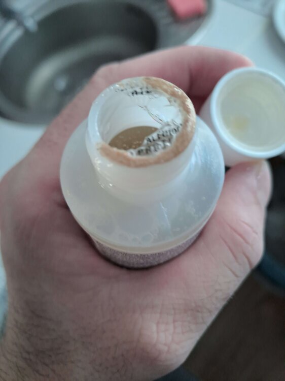 Dzień dobry, klika miesięcy temu kupiłem środek Five Star Saniclean, miałem kilka miesięcy przerwy, dzisiaj otworzyłem butelkę a tam w miejscu gdzie kiedyś było foliowe zamknięcie pojawiła się brązowa błonka, niestety zanim pomyślałem to ją zerwałem i wyrzuciłem ale na zdjęciu widać jaki przybrało kolor, czy to normalne? I co ważniejsze, czy to bezpieczne żebym go dalej stosował? Pozdrawiam Pan Szczur