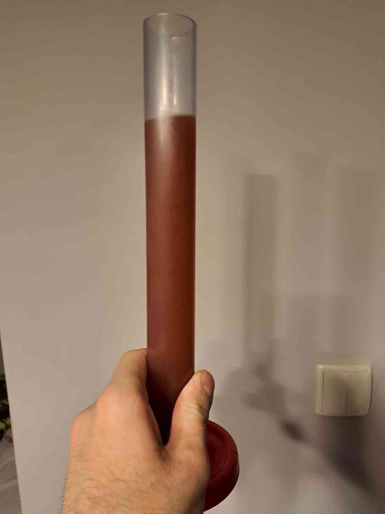 Większy update, piwo poszło w końcu do butelek. Na razie w smaku jest nadal mocno alkoholowe ale też...przyjemne całkiem jak na stan przed butelkowaniem, jestem ciekawy co z tego wyjdzie najpierw wyłowiłem to co się dało z czereśni zdezynfekowaną chochlą, potem próbowałem jeszcze dodłubać mieszadłem to co tam jeszcze zostało, ostatecznie jakieś "resztki" owocu zostały może z 4 butelkach, które sobie zaznaczyłem dla bezpieczeństwa. Po tych kilku łykach miałem odczucie w stylu "to może być naprawdę fajne piwo", zobaczymy co następne miesiące pokażą, jeśli nie będzie jakichś niespodzianek typu pleśń to na pewno będzie do wypicia aha, ostatecznie blg zeszło do 2,5 20231220_174325.mp4 -