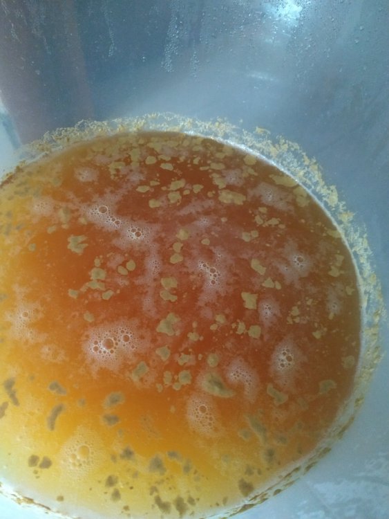8. Dzisiaj około 1 w nocy dodałem drożdże, postawiłem w temperaturze ok.20 stopni. Dzisiaj wygląda to tak jak na zdjęciu. To infekcja? W internecie widziałem że powinna być widoczna biała piana. U mnie za górze zebrał się "muł" z plamkami białej piany.