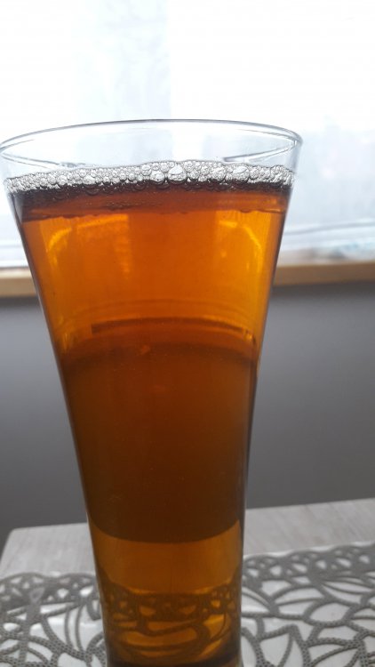 Piwo poszło do nagazowania. Wrażenie pozytywne, spodziewałem się pustego aloholowego cienkusza, a jest całkiem sporo słodowej treści, co w połączeniu z chmielami us daje przyzwoitą całość. Coś na kształt amber ale. Zdecydowanie można nazwać, to piwem. Po nagazowaniu powinno być całkiem pijalne. Pzdr.