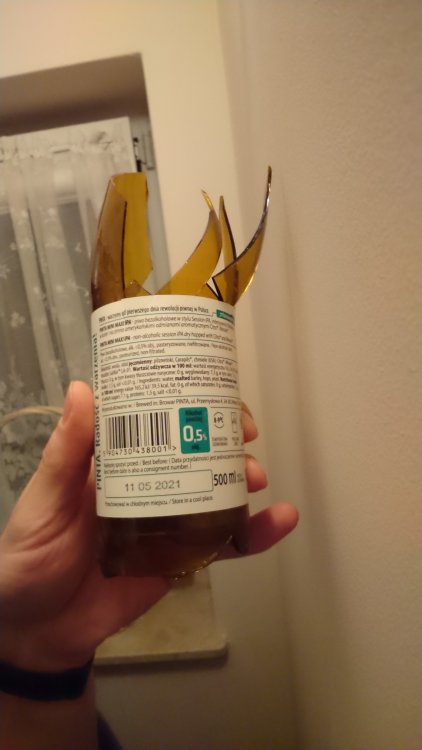 Nie wiem gdzie i czy to umieścić więc tu. Nie żeby robić zła reklamę ale ku przestrodze. Rozwaliło mi 4 butelki Pinta Mini Maxi Ipa. Kolejnych 6 wylałem. Przestraszyłem się nie na żarty. Pierdyknelo w lodowce. Dziwne jest to że szklana półka nie pękła ale jedno ze szkieł wbiło się w twardy plastik na "plecach lodówki"