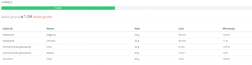 ehh, to wygląda ze bez doinwestowania w drugi fermentor, węzyki i jakieś worki filtracyjne sie nie uda... Zmodyfikowałem recepturę żeby zredukować IBU do 52 Pytanie, czy bez chmielenia na zimno da rade uzyskać aromaty/smak typowy dla APA / AIPA ? czy raczej będą one słabo wyczuwalne?