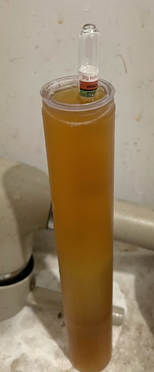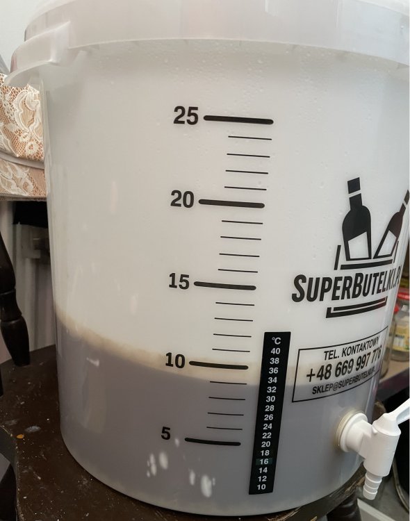 Już postawiłem krzyżyk i miałem to dzisiaj wylać, aż tu nagle rano patrzę i praktycznie brak wody w rurce ferm., to co pozostało bulga jak szalone. Na powierzchni 2-3 cm piany. Zapach próby, jak to małżonka oceniła "nawet pachnie piwem", BLG spadło po raz pierwszy do ok 8,5-9.