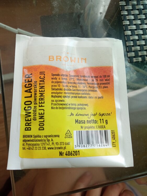 5. Czy mieliście kiedyś styczność z drożdżami brew go lager firmy browin? Jeśli tak to: 1)W jakiej temperaturze przeprowadzaliście fermentację i ile wam to zajęło? 2)Do jakiej ilości brzeczki zadawaliście drożdże?