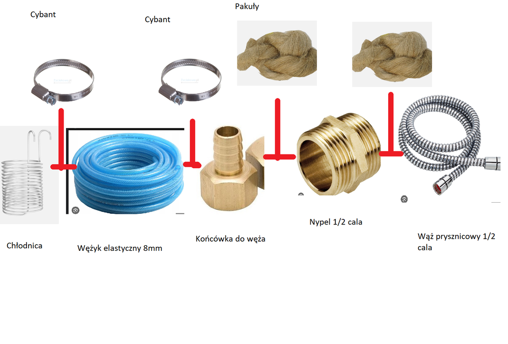 1. Dziś byłem w obi i udało mi się skompletować prawie wszystkie części, została mi tylko jedna łamigłówka, jak zredukować szybkozłącze 1/2 cala do mojego wężyka 8mm?