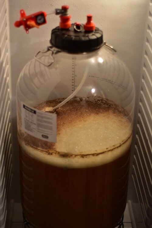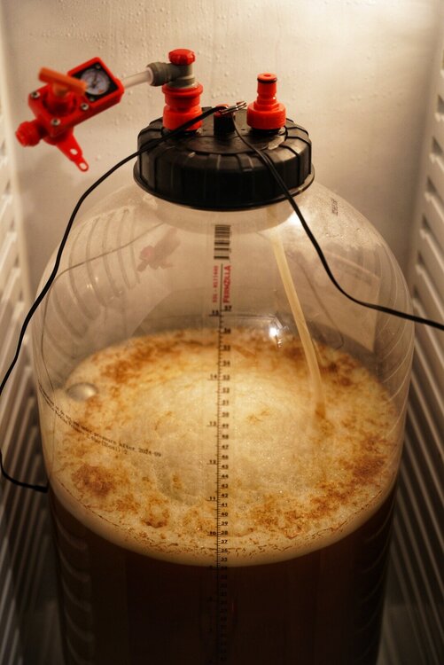 Warka #21 Ciepły Pils Pils niemiecki (hybryda) 12Blg 30IBU Zasyp: Pilzneński Viking Malt - 5kg Pale Ale Viking Malt - 2,2kg Red Active Viking Malt - 0,25kg Zacieranie: 64°C - 40min 72°C - 40min 78°C - i do filtracji Wysładzanie w locie do uzyskania 42L Chmielenie: 90 min 25g Hallertauer Perl (9,3%) 00 min 60g Hallertauer Tradition (7%) Efekt finalny to 32L brzeczki o gęstości 12Blg. (spore straty w chmielinach) Brzeczka schłodzona do 22°C i zaszczepiona 3 paczkami Safale W 34/70. Fermentacja w lodówce z temperaturą ustawioną na 18°C ruszyła bardzo szybko. Ciśnienie od początku ok 12 Psi. Po 36h podniosłem temperaturę do 24°C i po kolejnych 36h obniżyłem do 1°C. Piwo zostawiłem w Fermzilli łącznie przez ok 2 tygodnie. Po tygodniu od Cold Crash piwo było już idealnie klarowne i smakowało jak klasyczny Pils! Na początku byłem dosyć sceptycznie nastawiony do fermentacji w takich temperaturach, ale efekt końcowy mnie powalił. Profil jest tak czysty jak w dobrym sklepowym pilsie. Ogólnie była to pierwsza warka po wielu latach przerwy i do tego na zupełnie nowym, nie testowanym wcześniej systemie. Nowy śrutownik, nowa warzelnia i nowy fermentor, dokładnie wszystko nowe. Źle mogło pójść dosłownie wszystko, na szczęście nie było tragedii. Wyciągnąłem kilka wniosków na przyszłość i przypomniałem sobie przy okazji jaka to ciężka praca Test uznaje za zaliczony, a i piwo wyszło bardzo dobre.