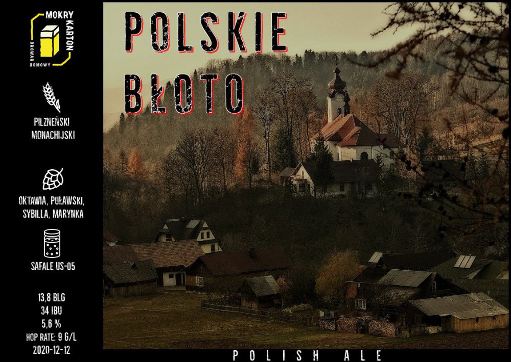12. #36 - Polskie Błoto - Polish Ale SŁODY Słodownia Słód Ilość Procent Soufflet Pilzneński 4 88.89 % Soufflet Monachijski 0.5 11.11 % CHMIELE Nazwa Alfa kwasy [%] Ilość [g] Czas [min] Gotowanie Marynka 7.6 30 60 Gotowanie Sybilla 4.3 20 3 Gotowanie Oktawia 9 20 3 Gotowanie Puławski 7.6 20 3 CHMIELE NA ZIMNO Ilość [g] Czas [dni] Na zimno Sybilla 4.3 30 3 Na zimno Oktawia 9 30 3 Na zimno Puławski 7.6 30 3 DROŻDŻE Safale US-05 gęstwa po #33 DODATKI PO WYSŁADZANIU Ilość brzeczki: 25 Pomiar [Brix] 13.2 WYDAJNOŚĆ: 73.33 % DO FERMENTORA Ilość brzeczki: 16 Pomiar [Brix] 14.2 SUMA SŁODÓW: 4.5 kg SUMA CHMIELU: 180 g HOP RATE: 11.25 g/l IBU: 35 ROZLEW Ilość piwa 14.5 Pomiar [Brix] 7.6 Cukier [g] 88 Notatki: Sporo "mąki" przedostało się przez sito. Chłodzenie bez chłodnicy w garze - idiotyczny pomysł, mocno się przypalił kocioł. --- Kalendarz: 2020-11-22: warzenie 2020-12-07: dodanie chmielu na cichą 2020-12-12: rozlew