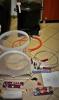 Miłe złego początki..... Nadejszła wiekopomna chwiła.... I tak dalej, i tak dalej;) Stwierdziłem, że pora zacząć umieszczać swoje zapiski z warzenia na Forum - dla siebie (pamięć, pamięć!) i dla potomnych;) Na początku kilka słów, jak to się wszystko zaczęło - a zaczęło się....od książek. Tak tak, książek, to nie pomyłka. Jako zdeklarowany mól książkowy, czytałem sobie w maju 2012 jakąś beletrystykę (nie pomnę co to było - przywoływana wyżej pamięć!) i gdzieś pomiędzy wierszami pojawiło się tajemnicze słowo - Cydr. Co to ten Cydr?! Chwila na google, i trafiłem na Forum (nie, nie to, również nie to z końcówką .biz) gdzie znalazłem prosty, miły i przyjemny przepis na Cydr z soku z kartonika. Postanowiłem spróbować, jako że sprzęt i jakieś tam doświadczenie posiadałem - od lat param się 'produkcją' wina;D Cydr nastawiłem, na Forum zaglądałem w poszukiwaniu wskazówek i niejako przy okazji zawędrowałem do wątków opisujących produkcję PIWA z BrewKitów. Natychmiast przypomniałem sobie, że owszem, już przed laty widziałem jakieś aukcje na allegro z opisem piwa PODOBNO lepszego niż sklepowe - ale do tej pory kwitowałem to drwiącym uśmieszkiem "akurat!". Tym razem, przekonany zapałem osób wypowiadających się na Forum stwierdziłem (w międzyczasie zabutelkowane 3 warki Cydru), że raz kozie śmierć, spróbujemy.... Spróbowałem. Po kilku tygodniach intensywnego zaczytywania się treściami For, 9 lipca 2012 nastawiłem swoją pierwszą Warkę z BrewKita - India Pale Ale. I....wsiąkłem...;D Do tej pory zrobiłem 7 warek z BrewKitów (wkleję poniżej moje zapiski z google docs), po każdej miniwarka piwa owocowego. Przez cały ten okres bardzo mi pomagała moja wspaniała Dziewczyna - zarówno przy dezynfekcji butelek/rozlewie, jak i opróżnianiu flaszek z piwka ;-D Dwa tygodnie temu zaś, po okresie kompletowania sprzętu, uwarzyliśmy (z kumplem z pracy którego wciągnąłem w tą pasję) pierwszą warkę zacieraną - Pszeniczne wg. przepisu Josefika - o tym też umieszczę wpis poniżej, kiedy czas pozwoli. P.S. Poniżej kilka fotek jeszcze z "etapu Cydru" ;-)