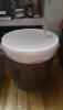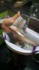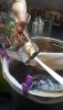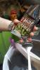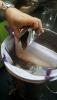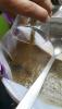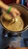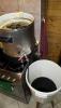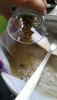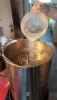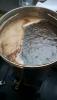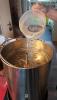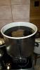 Witam, poniżej przedstawiam Państwu pierwszą warkę wykonaną za pomocą automatycznego kociołka zacierno-warzelnego Bulldog Brewer 25L, jest to kontynuacja tematu unboxing powyższego kociołka z przed paru dni. A więc do rzeczy, od 2 lat moim zestawem do warzenia piwa są dwa garnki - pasteryzatory. Zmiana zestawu uzasadniona była chęcią zmniejszenia wysiłku przy warzeniu możliwej automatyzacji i zwiększeniu kontroli samego procesu zacierania. Kociołek Bulldoga idealnie spełnia te potrzeby w moim mniemaniu i co najważniejsze cena dla mnie też jest przystępna (ok.1500 pln). Przygotowanie do warki to chwila na warsztat poszedł brown Bitter w wersji exportowej (miało być około 16 blg), do obliczeń korzystam z programu brewness. A więc do dzieła piwo było dla szfagra i pod niego (słody jedyne dostępne na dzień dzisiejszy w Biowinie wszystko Strzegom), a więc skład: 3 kg pilzneński 2 kg monachijski 0,5 kg karmelowy 400 0,5 kg pszenica 0,4 kg płatki owsiane Słody zostały ześrutowane za pomocą maszynki Zelmer z przystawką do śrutowania (u mnie grubo ponad 150 kg słodu i dalej działa) te 6 kg to jakieś 15 min mielenia, ześrutowane dość drobno (dużo mocniej niż słody np. z browamatora od których parę lat temu zaczynałem). Dawniej korzystałem z ręcznej maszynki biowinu (trzymam ją jako rezerwa) ale czas i potrzeba wygody robią swoje. Samo złożenie kociołka zajmuje kilka chwil (kociołek dzień wcześniej umyłem przed pierwszym użyciem oraz pogotowałem w nim 15L wody przez 30 min w celu usunięcia pozostałości po produkcji). Tak więc woda około 18L oraz kosz na słód i grzejemy do 70 stopni. Aby zaoszczędzić czas zalaliśmy warnik ciepłą wodą (około 30 stopni), moc na początek maksymalna czyli 2400W i po około 30 min mamy temperaturę założoną do zasypu słodów. Rurka do przelewu jest dość wysoko tak więc zaślepiona specjalnym "grzybkiem" z zestawu gwarantuje że słód nie wydostanie się z pojemnika podczas zasypu. Jak widać zadana ilość słodów nie wypełnia całego kosza, myślę że maksymalnie da radę zasypać około 8kg słodu. Po zasypie ustawiałem zacieranie w stylu angielskim jednotemperaturowo w 67 stopniach, moc zredukowana do 900W ( myślę że po dociepleniu 700W wystarczy) timer na 60 minut, oczywiście podłączamy pompkę i ustawiamy przepływ na niewielki. Muszę powiedzieć, że po około 20 min brzęczka cieknąca z rurki od pompki była bardzo klarowna (do tej pory takiej nigdy nie miałem). O końcu zacierania (60 min) informuje nas brzęczyk, ustawiłem temperaturę wygrzewu na 78 stopni i czas 10 min. moc 2000W. Przyrost temperatury przy tym ustawieniu wynosił niewiele ponad stopień na minutę, tak więc po niespełna 25 minutach mogliśmy przejść do kolejnej operacji czyli wysładzania. Po wygrzewie unosimy kosz, ma dwa poziomy (sposób montażu uchwytu niezbyt mi się podoba). nie sądziłem, że unoszenie pełnego kosza wymaga tyle siły i już wiem po co dwa poziomy. Brzeczka przednia około 14L miała 20 BLG - myślę że całkiem nieźle. Samo wysładzanie 3 razy po 5L przebiegło bez większych niespodzianek i po około godzinie mieliśmy blisko 29L brzeczki o zawartości cukru 12 BLG. (myślę że lepiej byłoby skończyć trochę wcześniej wysładzanie i uzyskać 27L - 26L o BLG na poziomie 13-14). Na kolejnym zdjęciu pojemnik ze słodem po wysłodzeniu Pod koniec wysładzania załączyliśmy grzanie na 101 stopni i maksymalnej mocy (2400W). Doprowadzenie do wrzenia i przełomu zajęło nam ponad 30min. Po doprowadzeniu do wrzenia moc ograniczyliśmy do 2200W. W sieci znalazłem sporo filmików z warzenia kociołkami typu Bulldog i w wielu z nich do chmielenia brzeczki stosują torby i ja stwierdziłem że mam na stanie nylonowy worek od prasy o pojemności 12L o gęstych oczkach w sam raz do tego celu. Torbę przypięliśmy spinaczami i do niej wrzucaliśmy chmiel, a poszło go sporo 30 gram Iungi na 60min następnie kolejne 30g Iungi i 10g Sybilli na 30 min, a potem w 15 i 0 minucie po 10 gram Sybilli. Dodatkowo szwagier sypnął 14g amerykańskiego Cascade na koniec. Torba od prasy sprawdziła się średnio i część chmielu przedostała się do brzęczki. Koniec końców otrzymaliśmy blisko 25L brzęczki nastawnej o zawartości cukru na poziomie 15 BLG i poziomie goryczy równym 55 IBU. Reasumując warzenie przebiegło bez problemów pojemność jak i wydajność wydają się jak dla mnie idealne. Wcześniejsze obawy co do wielkości otworów w pojemniku do słodu okazały się bezpodstawne i na ten moment nie będę tego zmieniał. Zakres mocy jak i sam sterownik są według mnie wystarczające. Moc można regulować do 2400W co 100W. Czas można ustawić do 99 minut co 1 minute sama obsługa sterownika jest banalna. Jedynie do tuningu jest bazooka o bardzo dużych oczkach (chyba że w zamyśle ma chronić pompę przed dużymi kawałkami słodu to w takim wypadku jest OK). Jedynym elementem nie przetestowanym przeze mnie, a wchodzącym w skład zestawu była chłodnica, która w mojej opinii jest za mała (posiadam dużo większą i myślę, że wydajniejszą chłodnice - na zdjęciu z lewej oryginał Bulldoga po prawej moja stara chłodnica), ale z drugiej strony jeśli nie posiada ktoś innej to kosztem ilości zużytej wody i dłuższego czasu też brzęczkę da się schłodzić. Jedyną rzeczą którą na ten moment chce nabyć to hopspider o oczkach około 200 mikronów co powinno zatrzymać chmiel. Tak więc zakup Buldoga po pierwszej warce w mojej ocenie jest w porządku, a co za tym idzie jestem zadowolony z zakupu i na ten moment polecam. No to na tyle, Pozdrawiam