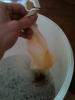 Nowa metoda na chmielenie na zimno Jak już wcześniej wspominałem w innym wątku myślałem nad metodą na chmielenie na zimno która jest łatwa i przyjemna. Obejrza wiele filmików jak to się robi, jakieś druciaki inne takie pończochy. Śrenio mi się to podobało ponieważ, albo komuś zleciało to z węża, ktoś inny wkładał obydwie ręce do wiadra. Nie ja jestem leniwy nie chce mi się ciaprać. Będąc jesienią w sklepie stacjonarnym Łysonia oglądałem sobie te wszystkie sita i znalazłem ciekawe sito stożkowe o bardzo niewielkich oczkach. Jak na mój gust oczka w tym sicie są mniejsze niż w hop spiderze, więc niewiele myśląc kupiłem sobie takie cudo za 45 zł z myślą powieszenia tego w wiadrze. Patent na powieszenie był prosty. Sito jest nylonowe więc i dość sztywne. Kiedy postawiło się je w wiadrze to nawet stało. Za pomocą igły zwykłą nitkę przeciągnąłem przez rant sita, a następnie z zewnątrz nitkę zabezpieczyłem taśmą klejącą. I tak zrobiłem w 4 miejscach Skórony opis piwa. 12 blg. Burzliwa rozpoczęła się po 8h. Pierwszy tydzień fermentacji odbywał się w temperaturze 14-16 stopni i był podnoszony do 21 w okolicy 14 dnia. 15 dnia piwo zostało zlane na cichą fermentacje i schłodzone do około 10 stopni Celsjusza. Piwo warzone z ekstraktów. 18 dnia piwo zostało zabutelkowane Potem już było z górki. Najpierw zlałem piwo, a potem wsypałem chmiel. Niestety podczas sypania chmielu nasypało mi się odrobinę poza rant sita Na zdjęciach nie widać tego jednak dobrze A tak prezentowała się całość (zdjęcie robione kalkulatorem sorka za jakość) Po 4 dniach podjąłem się butelkowania. I wedle zaleceń całość zlałem przez pończochę (kontrola). Jeden koniec zamocowany był na kraniku, drugi z pończochą został umieszczony w wiadrze do którego dodałem również syrop. Pończocha pomogła mi stwierdzić ile ewentualnych chmielin dostac się mogło do piwa pomomo działania sita. A wyglądało to tak: Bardzo duży osad z drożdży na dnie, jak i również osad drożdży spory pozostał w pończosze. I tutaj pytanie dla zaawansowanych. Gdyby te drożdże z chmielinami lub bez nich spowodować by mogły gejzer lub granat? Czy takim wypadku jak u mnie tuż przed zlewaniem na cichą należało całość najwpierw schłodzić by wiekszośc drozdzy opadała i potem zlewać to na cichą trzeba było? Czy w takim wypadku ta pończocha była potrzebna?- 25 odpowiedzi