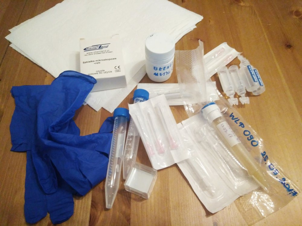 Cześć, dzisiejszy eksperyment wyszedł dość spontanicznie. W zasadzie chciałem sprawdzić kondycję szczepu WLP090, który odżywiłem i przeniosłem pod sól fizjologiczną około 8 miesięcy temu. Dodatkowo skończył mi się środek dezynfekujący oparty o alkohol, zatem używałem StarSanu. To w sumie czemu by nie sprawdzić jak StarSan skutecznie sobie radzi z ubijaniem drożdży. StarSan rozrabiałem w baniaku 4 litrowym, woda demineralizowana ze sklepu budowlanego. Użyłem do tego celu jak zawsze około 9 mililitrów. Zatem na litr wody demineralizowanej około 2,2 - 2,3 ml StarSanu. Pamiętam, że rozrabiałem go około miesiąca temu, bo mi się skończył w trakcie warzenia. Sprawdziłem paskiem o szerokim zakresie, wyszło że jeszcze ma pH grubo poniżej 3. Nie jest też jeszcze mętny. Jak już wspomniałem, gwiazdą dzisiejszego występu jest szczep WLP090 San Diego Super. Super czysty profil. Bardzo szybko pracuje (trzeba pilnować mocno temperatury przez pierwsze 3-4 dni). Całkiem fajnie flokuluje i piwo wychodzi bardzo klarowne. Szczep polecił mi blisko dwa lata temu @Undeath, dzięki!, szczep jest rewelacyjny. StarSan trzymam w butelce z atomizerem Jak możecie wydać około 15 zł, to polecam ten rodzaj butelek. Mają fajny patent z tłoczkiem. Bo rozpylają zarówno przy wciskaniu jak i puszczeniu dźwigni. Dodatkowo rozpylacz robi bardzo drobniutką mgiełkę. Reszta gratów: Szkiełka podstawowe i nakrywkowe (z odzysku, musisałem myć w izopropanolu i wodzie destylowanej, bo nowe mi jeszcze nie doszły). Do transferów strzykawki i igły. Do rozcieńczania sól fizjologiczna i puste fiolki 15 ml typu falcon. Błękit metylowy jako barwnik. Jak się używa barwnika to obowiązkowo rękawiczki. Jeszcze jedno, aby przeprosić za jakość zdjęć to winne są temu szkiełka nakrywkowe, które odzyskiwałem i czyściłem. Ale niestety nawet IPA nie dała rady. Najpierw jak wygląda szczep po 8 miesiącach w pudełku styropianowym z wkładami chłodzącymi i to na samym dole lodówki, bo tam mam najzimniej i najbardziej stabilną temperaturę. Te plamy rozmytego brudu i pyłki to właśnie te nieszczęsne szkiełko. Martwe drożdże to te mocno niebieskie, można je policzyć na palcach obu dłoni. Jest nawet lepiej jak po rehydracji sucharów. Jestem bardzo pozytywnie zaskoczony. Tyle miesięcy a drożdże nadal mają się świetnie. Ale i tak wolę mrozić, bo o wiele mniej miejsca krioprobówki zajmują. Wlałem 1 mililitr drożdży do pustej fiolki. I dolałem 9 ml StarSanu. Środek dezynfekujący się nieco rozcieńczył, ale nadal powinien mieć swoją moc. Odczekałem 5 minut, w międzyczasie myłem szkiełko. Wrzuciłem na preparat i oto wynik: Latałem mikroskopem po całym preparacie. Nie znalazłem żadnej żywej komórki (mogłem oczywiście przeoczyć). Nie wiem jak was, ale ten środek bardzo mnie przekonuje. W przeliczeniu na litr środka gotowego do użycia jest bardzo tani i skuteczny. Oczywiście eksperyment powtórzę jeszcze dla drożdży Dekkera (Brettów). Jednakże obstawiam ten sam rezultat. Chcę jeszcze powiedzieć, że StarSan w składzie oprócz kwasu fosforowego zawiera również alkohol izopropylowy (IPA), który jest świetnym rozpuszczalnikiem i kwas dodecylobenzenosulfonowy. Sam kwas fosforowy na mój stan wiedzy mógłby okazać się zbyt słabym środkiem, aby w małym stężeniu zabić drożdże. Przecież drożdże płuka się w kwaśnym środowisku, nawet w okolicach pH ~2 przez kilka minut. Ale producent wiedział co robi dodając do StarSanu rozpuszczalnik i anionowy środek powierzchniowo czynny. Zatem wygląda na to, że działa jak sobie tego życzymy I na koniec. Więcej o tym środku, jak go stosować, w jakich proporcjach, czemu tak fajnie działa z NaOH, jak bezpiecznie stosować NaOH, to wszystko możesz przeczytać tutaj: Jeżeli masz jakiś pomysł na eksperyment z wykorzystaniem mikroskopu to proszę napisz. Jak będę umiał to pomogę