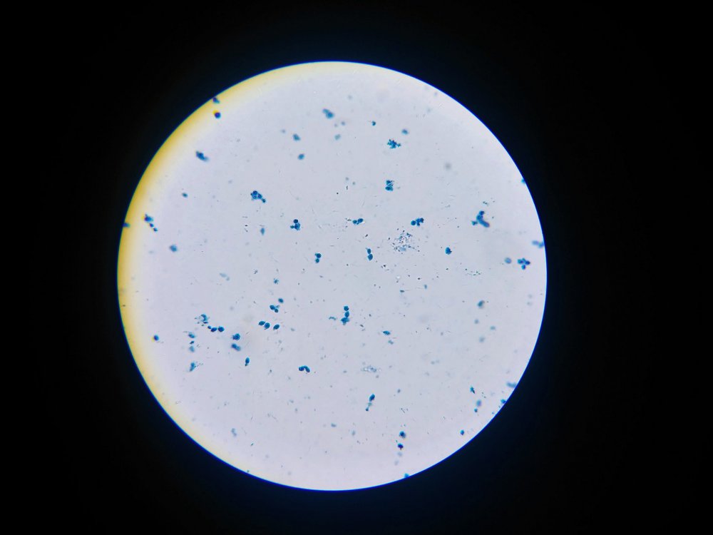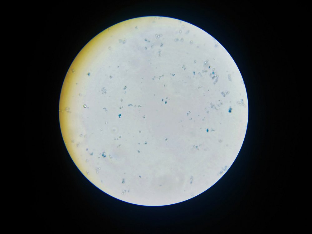 Cześć. Przeczytanie wpisu zajmie Ci poniżej 10 minut. Jeżeli wymieniamy atrybuty piwowara domowego to czystość jest na pierwszym miejscu. Czystość browaru domowego jest w kontekście minimalizacji kontaminacji/zakażenia brzeczki. Czystość oznacza mycie, sanityzację, dezynfekcję czasem również sterylizację. Długo zbierałem się by zrobić to doświadczenie. Chciałem sprawdzić skuteczność najbardziej popularnych środków dezynfekujących używanych w naszych browarach domowych na drożdże Brettanomyces. @Maciejeq jakiś czas temu dostarczył mi gęstwę Lochristi Brettanomyces Blend THE YEAST BAY. Jest to blend kilku szczepów Brettanomyces, jeżeli środki są skuteczne to nic (wg. podręczników to 99.999%) w gęstwie nie ma prawa przeżyć. Podczas tego doświadczenia ucierpiały miliardy komórek drożdżowych i jedne szorty męskie, takie za kolano. Środki które sprawdziłem to: StarSan, miałem o to wiele pytań. Użyłem 2 mililitrów StarSanu rozpuszczonego w 1 litrze wody demineralizowanej. Kwas fosforowy (V), inaczej ortofosforowy. Ten który kupiłem ma wagowe stężenie 75%. Swój rozcieńczyłem do 5% wagowo ( @dziedzicpruski, w nawiązaniu do którejś z dyskusji, powtórzyłem eksperyment dwa razy z kwasem) Nadwęglan Sodu (Na2CO3·1.5H2O2), w naszym świecie to OXI. W jednym litrze wody demineralizowanej rozpuściłem 2 gramy, podobno tyle jest skuteczne. Soda Kaustyczna, NaOH, właściwości dezynfekcyjne wg podręczników posiada od stężenia 2 molowego. Mol NaOH waży około 40 gramów, zatem w 1 dm^3 roztworu powinno znajdować się 80 gramów NaOH. Odmierzyłem 80 gramów i dopełniłem do 1 litra wodą demineralizowaną. Wszystkie wyżej wymienione środki są kontaktowe. Zatem drożdże muszą mieć kontakt z samym środkiem a nie oparami. Materiałem wejściowym jest płynna gęstwa, która wpływa na stężenie środka dezynfekującego. Dodatkowo samej gęstwy nie da się podglądać pod mikroskopem, będzie to po prostu komórka na komórce i rozmyty obraz. Wszystko by pływało i obserwacja byłaby utrudniona. Zatem upiekę dwie pieczenie na jednym ogniu. Aby zminimalizować rozcieńczenie środka dezynfekującego pobieram bardzo niewielką próbkę gęstwy i dużo środka dezynfekującego, w końcu to środek kontaktowy, niech drożdże w nim pływają. W ten sposób rozcieńczam samą próbkę, obserwacja jest możliwa i wygodna. Środek dezynfekujący traci swe właściwości w stopniu minimalnym. Po czasie kontaktu brałem małą próbkę, dodawałam barwnik i robiłem preparat mikroskopowy. Starałem się preparat robić w przeciągu dwóch minut, wtedy wpływ samego barwnika na wynik jest mały. Drożdże Brettanomyces używane są w piwowarstwie w sposób zamierzony i niezamierzony. Te niezamierzone obrosły w legendę jakoby miały nogi, były nieśmiertelne, przenikały przez ściany, miały lasery i pewnie znajdzie się jeszcze kilka innych opowieści. Drożdże Brettanomyces używane w przemyśle spożywczym na mój stan wiedzy nie tworzą zarodników. Te dzikie (inne gatunki Dekkera), które rzadko robią coś dobrego w brzeczce już mogą. Doświadczenie jest oparte o blend używany w piwowarstwie. Zatem pozostaje czas i miejsce na dalsze eksperymenty. Gęstwa spędziła u mnie w lodówce ponad 6 tygodni, nie miałem wcześniej czasu aby do nich przysiąść. Rozcieńczyłem ją jedynie na początku solą fizjologiczną aby lepiej zniosły czekanie. Zniosły to całkiem nieźle, patrząc całokształtem ponad połowa jest żywa. Tutaj małe wyjaśnienie jak patrzeć na obrazy mikroskopowe. Komórki wybarwione na niebiesko są martwe. Testem, który sprawdza czy komórka drożdżowa jest żywa jest próba jej wybarwienia, np.: za pomocą błękitu metylenowego. Jeżeli jest żywa, to silna membrana nie przepuści barwnika i sama komórka pozostanie kremowo biała. Błękit metylenowy, którego używam jest toksyczny dla komórek i po kilkunastu/kilkudziesięciu minutach przenika i zabiją komórkę, dlatego trzeba się śpieszyć i wiele rzeczy zgrywać w czasie. Materiałem jest gęstwa po piwie APA, oprócz samych drożdży będzie również widać wiele różnych drobin, np chmielu, osadów białkowych itp itd. Te będą barwić się na niebiesko. Gęstwa wygląda tak. Powtarzam, że żywych komórek drożdżowych jest trochę więcej jak martwych. Pojedynek pierwszy: Brettanomyces kontra StarSan Rozpuściłem 2 ml Star Sanu w 1 litrze wody demineralizowanej. Środek działa kontaktowo. Jako pojemnik służy mi strzykawka 2 ml. Odebrałem 0.2 ml gęstwy i dopełniłem do 2 mililitrów roztworem Star Stanu. Star San w składzie zawiera kwas ortofosforowy, alkohol izopropylowy, który wg mnie działa tutaj jako rozpuszczalnik, środki powierzchniowo czynne, odpowiedzialne za pienienie i jakiś składnik patentowy. Czas kontaktu 5 minut. Potem szybko do wybarwienia, na preparat i pod mikroskop. Powiększenie 100x, latałem, szukałem nie znalazłem ocalałych. Star San z tej walki wychodzi z tarczą, Brettanomyces poległy. Pojedynek drugi: Brettanomyces kontra Nadwęglan Sodu (Na2CO3·1.5H2O2), aka OXI. Sprawił mi trochę problemów, ze względu na to że wydziela H202, pod preparatem miałem bąbelki i utrudnioną obserwację. Rozcieńczyłem 2 gramy Nadwęglanu Sodu w 1 lirze wody demineralizowanej. Zostawiłem na mieszadle i w kilka minut się rozpuścił. Ponownie pobrałem 0.2 ml gęstwy i dopełniłem do 2 mililitrów środkiem dezynfekującym. Czas kontaktu 10 minut. Barwienie, potem preparat i pod mikroskop: Powiększenie 400x, udało mi się znaleźć żywe komórki w skupiskach/zbitkach drożdży. Po czasie kontaktu, 15 minutowym nadal były żywe komórki, ale było ich zdecydowanie mniej. Zatem trzeba by było albo zwiększyć dawkowanie, ale wtedy mamy ten niefajny osad lub wydłużyć czas. Tym razem z tarczą wracają Brettanomyces. Pojedynek trzeci: Brettanomyces kontra Kwas fosforowy (V), ortofosforowy, 5%