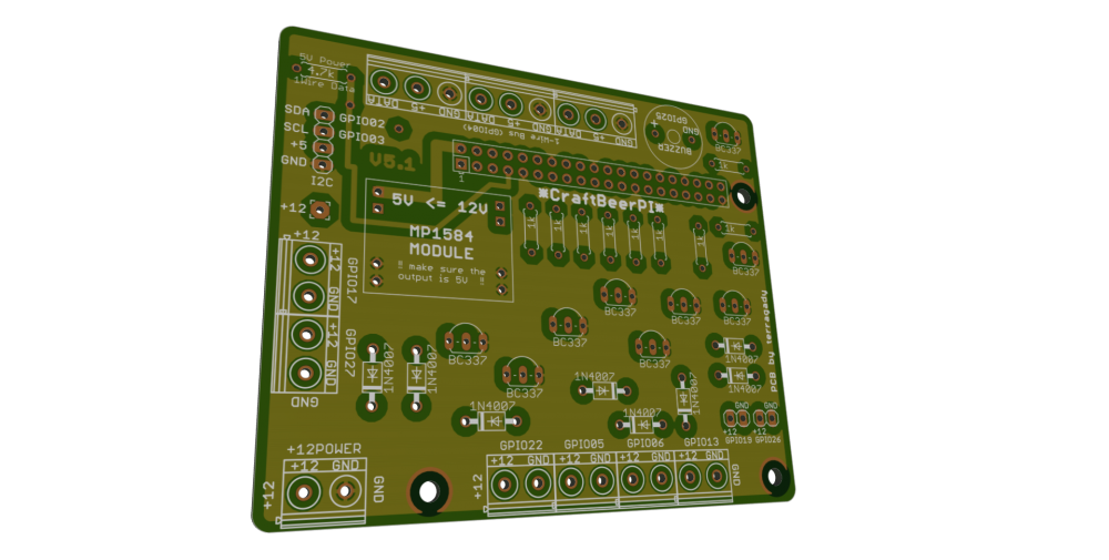 Hej, za pewne wielu z was korzysta już z CraftBeerPi lub przynajmniej słyszała. Nie mieliśmy za bardzo dedykowanego tematu do dyskusji na jego temat oraz warto przedstawić go nowym użytkownikom. oficjalna strona projektu: http://craftbeerpi.com/ A więc od początku. CraftBeerPi to otwarty projekt sterownika browarniczego zawierającego multum funkcji. Sterować możemy wszystkim co nam potrzebne, temperatury i kroki zacierania, gotowania, fermentację. Obsługiwać możemy pompy, zawory, przełączniki, wyłaczniki i co nam przyjdzie na myśl. Zaletą sterownika jest jego sieciowość i bezprzewodowość a więc kontrolować to wszystko możemy ze smartfonu, tabletu, komputera ale i z podłączonego wyświetlacza do sterownika jeżeli taki chcemy zainstalować (nie obowiązkowe). Od wersji 3.0 dostępne są dodatki do podstawowego programu a więc możliwości są praktycznie nie ograniczone. Mamy parę trybów sterowania temperaturą, histerezy, PWM itd. możemy użyć czujnika temperatury pt100 który jest mniejszy i bardziej dokładny. Co potrzebujemy aby zacząć korzystać? - sercem kontrolera a zarazem jedną z najdroższych jego części jest RaspberryPi - mikro komputer. Możemy posłużyć się każdą jego wersją natomiast ja polecam taką która będzie miała wbudowane WiFi czyli Raspberry Pi 3 lub Raspberry Pi Zero (który jest jednak trochę ograniczony lecz dość tani w porównaniu do pełnej wersji RPi3). - przekaźnik (SSR - z radiatorem lub mechaniczny) - cyfrowy czujnik temperatury DS18B20 wraz z rezystorem 4.7k Ohm (ponoć są problemy z chińskimi podróbkami czujników jednak ja nie miałem z nimi raczej żadnych problemów, ale warto zamówić jeden czy dwa dodatkowo gdyby z którymś było coś nie tak, nie są takie drogie, ew kupujemy oryginalne od Texas Instruments). Podstawowy zestaw możemy rozbudowywać o wspomniane np czujniki temperatury pt100 RTD, motozawory, pompy czy ekran dotykowy podłaczany do RaspberryPi Polecane jest również odizolowanie Raspberry Pi od przekażników dodatkowym interfejsem nakładanym na mikro komputer (poprzez tranzystory). Z tego co pamiętam całkowity prąd jaki może być pobierany z wszystkich wyjść GPIO to 20-50mA a więc nie można podłączyć bezpośrednio wielu przekaźników. Sprawę załatwi oficjalna płytka (koszt około 50euro jednak nie wiem jaki jest obecny stan sprzedaży) lub moja własna, którą stworzyłem na własne potrzeby i przeszła już parę iteracji i jest chyba już dobrze dopracowana. Można ją znaleźć tutaj wraz z gerberami https://github.com/terragady/CraftBeerPi lub można pisać do mnie, często mam jakieś nadwyżki takich płytek. Są dostępne dwie wersje, jedna pasuje idealnie do mniejszej wersji Raspberry Zero (3.1) a druga jest większa z większą ilością wyjść i pasuje gabarytowo bardziej do Raspberry Pi 3 (lub wcześniejszych wersji) jednak można stosować je zamiennie bez problemu. Płytka po zasileniu (6,5 - 28V) dostarcza także zasilanie dla samego Raspberry więc zbędne jest oddzielne zasilanie a 12V prawie każdy ma pod ręką czy to do pomp czy innych rzeczy. Do wykończenia płytki potrzebujemy paru podstawowych komponentów jak rezystory, tranzystory, diody i step down konwerter w postaci MP1584 buck modułu (ogólnie dostępny). Podłączenie W zasadzie za dużo tutaj pisać nie trzeba. Tutaj przykładowy schemat jak podłączyć przekaźniki oraz czujniki temperatury: A więc do czujników temperatury potrzebujemy tylko jedno wyjście pod które możemy podłączyć praktycznie nie skończenie wiele czujników, jest to zazwyczaj GPIO 4 (lecz można to zmienić). Jednak do każdego wyjścia wykonawczego, jakim jest przekaźnik musimy użyć oddzielnego wyjścia GPIO lecz mamy ich dość sporą ilość więc martwić się tym zbytnio nie trzeba. Musimy odpowiednio zasilić jeszcze Raspberry kablem microUSB bądź poprzez wejście 5V na pinach. Pamiętać należy że Raspberry nie ma regulatora innego niż 3v3 dlatego trzeba być ostrożnym bo wyższe napięcie może nam spalić malinkę. Jeżeli posiadamy płytkę rozszerzenia do Raspberry wtedy podłączamy zasilanie pod odpowiedni port i wszystkie przekaźniki na oznaczone wyjścia GPIO na płytce a nie na RaspberryPi bezpośrednio. Czujniki temperatury podpinamy pod wyjścia dostępne na płytce oraz/lub dokładamy następne równolegle do nich. Można np wyprowadzić jeden kabel od czujników na zewnątrz i dalej rozdzielić go na dwa, trzy czy więcej czujników. Dodatkowo możemy podłączyć prosty LCD z modułem i2c do wyświetlania podstawowych danych jak temperatura czy czasy kroków. Do tego potrzebujemy zwykły wyświetlacz 20x4 oraz wspomniany moduł i całośc podłączamy pod wyjścia i2c SDA SCL na Raspberry oraz musimy zadbać aby plugin LCD był zainstalowany. Instalacja Instalację zaczynamy od wgrania systemu operacyjnego dla RaspberryPi. Jest tutaj dużo metod i różnych systemów ale najłatwiejszą metodą instalacji jest wrzucenie NOOBS na kartę microSD i uruchomienie maliny. Dla Raspberry Pi Zero i Zero W polecam NOOBS Lite oraz system także w wersji Lite dla reszty spokojnie zwykły system. Pobieramy pliki ze strony https://www.raspberrypi.org/downloads/noobs/ Pamiętać należy aby do instalacji podłączyć ekran poprzez kabel HDMI (lub miniHDMI dla Pi Zero) oraz co najmniej klawiaturę do gniazda USB. Póżniej już będziemy mogli łączyć się poprzez SSH ale pierwsza instalacja musi odbyć się właśnie w ten sposób. Po uruchomieniu łączymy sie z internetem wpisując dane naszej sieci WiFi i instalujemy Raspbiana. Następnie właściwa instalacja CraftBeerPi. Warto wspomnieć że obecnie są dostępne co najmniej 3 wersje. Wersja 2.2 jest to stabilna wersja zalecana do używania przez mniej doświadczonych użytkowników, wersja 3.0 jest to wersja beta na nowym kodzie programu jednak działa bez zarzutu, czasem ma małe problemy ale wszystko działa i smiało można