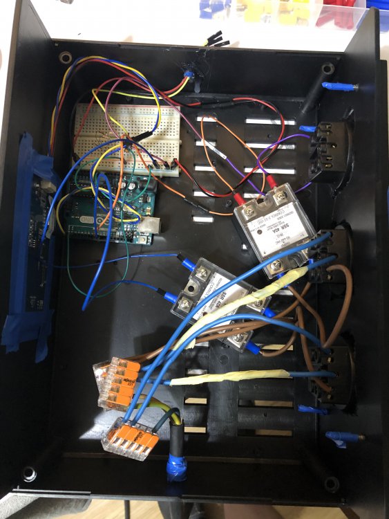 Witajcie, na wstępie polecam ten "artykuł" do kawy - będzie długo. Wiele osób z facebook'owej grupy Jewarzka oraz grupy związanej z kotłami elektrycznymi poprosiło mnie o ewentualne przygotowanie sterowników, który zaprezentowałem jako efekt mojej zaległej pracy magisterskiej. Projekt trochę rozbudowałem, by Wam badziewia nie pokazywać. Wcześniej nie było doprowadzone zasilanie bezpośrednio do sterownika. Teraz jest już wszystko od A do Z i mogę Wam zaprezentować jego działanie. Nie jestem w stanie czasowo realizować takich sterowników, lecz postanowiłem by prawie w 100% podzielić się z Wami rezultatem mojej kilku miesięcznej batalii. Jest już kilka sterowników na forum, lecz mój pokażę Wam krok po kroku, porządnie na tyle ile będę potrafił. Z góry przepraszam za może ewentualne błędy w połączeniu instalacji - nie jestem elektrykiem, a robotykiem. Na wstępie kilka słów o sterowniku. Jest to dokładnie adaptacyjny sterownik PID mający na celu ustabilizowanie temperatury zacieru w procesie warzenia piwa. Nazwa może przerażać lecz nie jest to AŻ tak bardzo skomplikowane. Efektem pracy było utrzymanie temperatury z oscylacjami nie przekraczającymi 0.3°C. Sterownik ma możliwość dodania kilku przepisów, edycji ich oraz zacierania - wszystko będzie zaprezentowane poniżej. Moja historia wygląda tak, że kupiłem Coobre CB3, wpiąłem się w grzałki, zrezygnowałem z gotowego sterownika i zaimplementowałem własny. W Coobrze denerwowało mnie to, że nie widzę wszystkich informacji na raz - muszę czekać, aż się przewiną. Tak wiem, jest już Coobra PRO, która pozwala na zaobserwowanie wszystkich informacji, ale byłem pierwszy Dodatkowo w celu rozbudowy browaru domowego zdecydowałem się na dodanie funkcji kontroli temperatury fermentacji - tu akurat sterownik działa z użyciem temperatury zadanej oraz histerezy ustawianej przez użytkownika. Możliwe wykorzystanie sterownika - gdzie go użyć oraz jego funkcje: - kontrola temperatury zacierania - Sterownik będzie działał zarówno w kotłach automatycznych jak i zwykłych garach z użyciem grzałki elektrycznej wkładanej do zacieru. - kontrola temperatury fermentacji - możliwa równoczesna kontrola chłodzeniem (lodówka) oraz grzaniem (pas grzewczy) - kontrola temperatury przy zakwaszaniu - możemy podpiąć pas grzewczy i utrzymywać temperaturę 30-40°C nieprzerwanie przez wymagany czas Na pewno znajdziecie więcej zastosowań takiego sterownika Planuję zaprezentować Wam kilku częściowy poradnik DYI jak wykonać taki sterownik. Temat jest bardzo rozległy, więc artykuł będzie składał z kilku części: Część #0 - Wstęp, prezentacja sterownika oraz jego działanie Część #1 - Elektronika, podłączenia instalacji, opis elementów, koszty Część #2 - programowanie Arduino - ogólny zarys konfiguracji czujnika temperatury DS18B20, programowanie prostych programów działających na histerezie Część #3 - programowanie ekranu Nextion - projekt wykorzystuje ekran dotykowy, z graficznym układem GUI, jest w pełni programowalny Część #4 - teoria odnośnie technik sterowania - sterownik PID oraz sterownik adaptacyjny Oczywiście Część #4 jest pewnie do wyrzucenia - nie wiem czy kogoś będzie interesowało pokrótce co się dzieje w sterowniku, z czym się to je. Reszta części tez jest tematem elastycznym - kwestia co chcecie się dowiedzieć. Jak wiadomo, jeśli ktoś chce zrealizować taki sterownik - jest "gadżeciarzem". Mój sterownik posiada takie elementy, które nie są bardzo potrzebne, lecz posiadanie ich znacznie ułatwia pracę oraz wygląda bardzo przyjemnie. Takim elementem jest między innymi ekran dotykowy Nextion 3,2". W moim projekcie stosuję taki ekran - można użyć jakiegokolwiek wyświetlacza i dostosować do Waszych potrzeb. Projekt podzielony jest na części, abyście mogli np. nie używać ekranu który ja użyłem, dodać inny własny, który chcecie i dalej możecie korzystać z pozostałych części projektu i wszystko będzie działało. Dobra tyle słowem wstępu, mam nadzieję, że ktoś dotrwał - czas na prezentację sterownika. Nie będę opisywał zdjęć za bardzo - wszystko widać krok po kroku. Rys.1 Ekran powitalny Rys.2 Lista przepisów - możemy je edytować lub wcisnąć podgląd i od razu przejść do wykonywania wybranego przepisu. Rys.3 Edycja przepisu PALE ALE i dodanie przerw zacierania. Rys. 4 Ustawienie czasu gotowania oraz czasów chmielenia Rys.5 Podgląd przepisu - widzimy go również po edycji. Z tego miejsca możemy wystartować działanie sterownika. Rys.6 Sterownik wystartowany. Pojawia się tu temperatura zadana, aktualna z czujnika oraz czas kolejno w minutach i sekundach do końca przerwy. Można zresetować działanie sterownika - powróci do wykonywania pierwszej przerwy. Możliwy jest również wybranie trybów pracy (domyślnie automatyczny). Rys. 7 Tryby pracy sterownika - możemy wybrać tryb manualny (np. jak niewystarczająco gotuje się brzeczka) i ustawić manualnie moc grzałek od 0-100% z dokładnością mniejszą niż 0.5%. Zakres 0 - 255. Rys.8 Wygląd działającego sterownika podpiętego bezpośrednio pod Coobra CB3. Rys.9 Kontrola fermentacji - niestety ekran jest inteligentny na tyle, że nie można wyświetlać liczb zmiennoprzecinkowych. Trochę to zmienię by wyświetlało mimo to nie tylko liczby całkowite. (zniknął gdzieś przycisk COFNIJ oraz ON/OFF który zobaczycie w zdjęciach sterownika). Wykonałem na tym sterowniku warkę z powodzeniem. Nie ukrywam, że teraz już z niego nie korzystam, bo wykorzystuje go głównie do kontroli temperatury fermentacji - działa z lodówką od 2 dni (06.06.2020) Więc polecam go do kotłów, gdy ktoś nie posiada np. elektroniki w kotle, bądź kupił uszkodzony kocioł bez sterownika. Przedstawiam Wam również wykres z przebiegiem temperatury przy zaimplementowanym sterowniku PID w kotle Coobra CB3 - myslę, że efekt jes